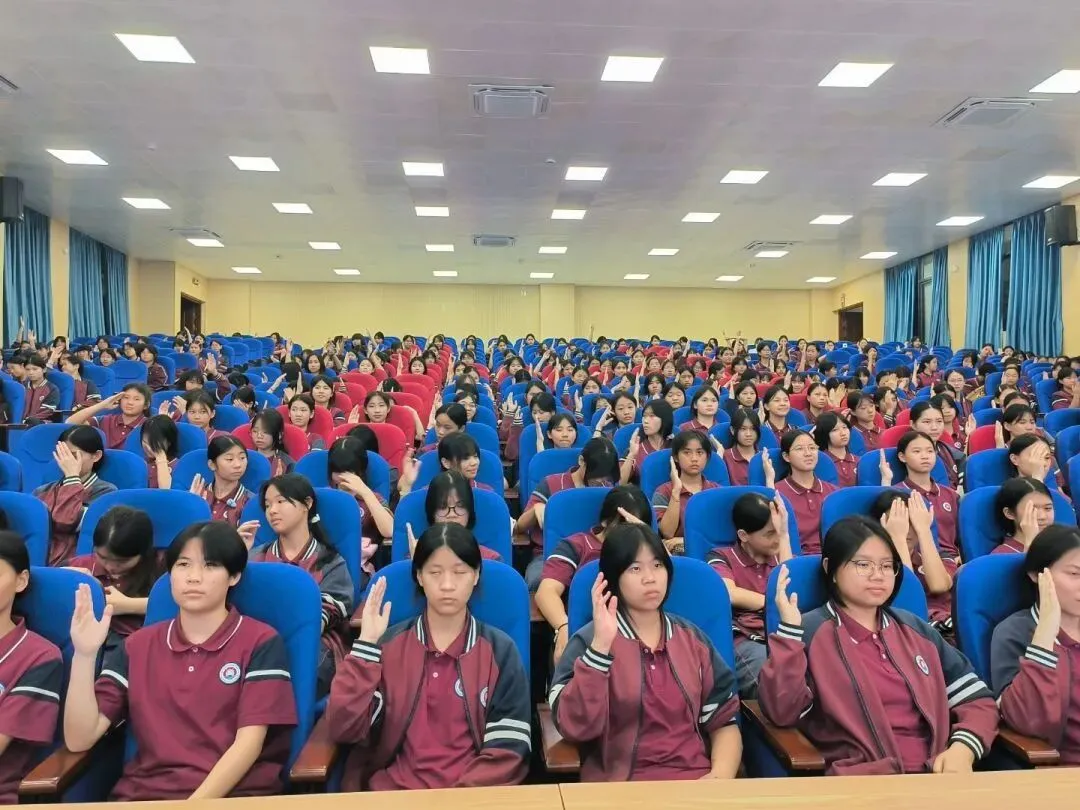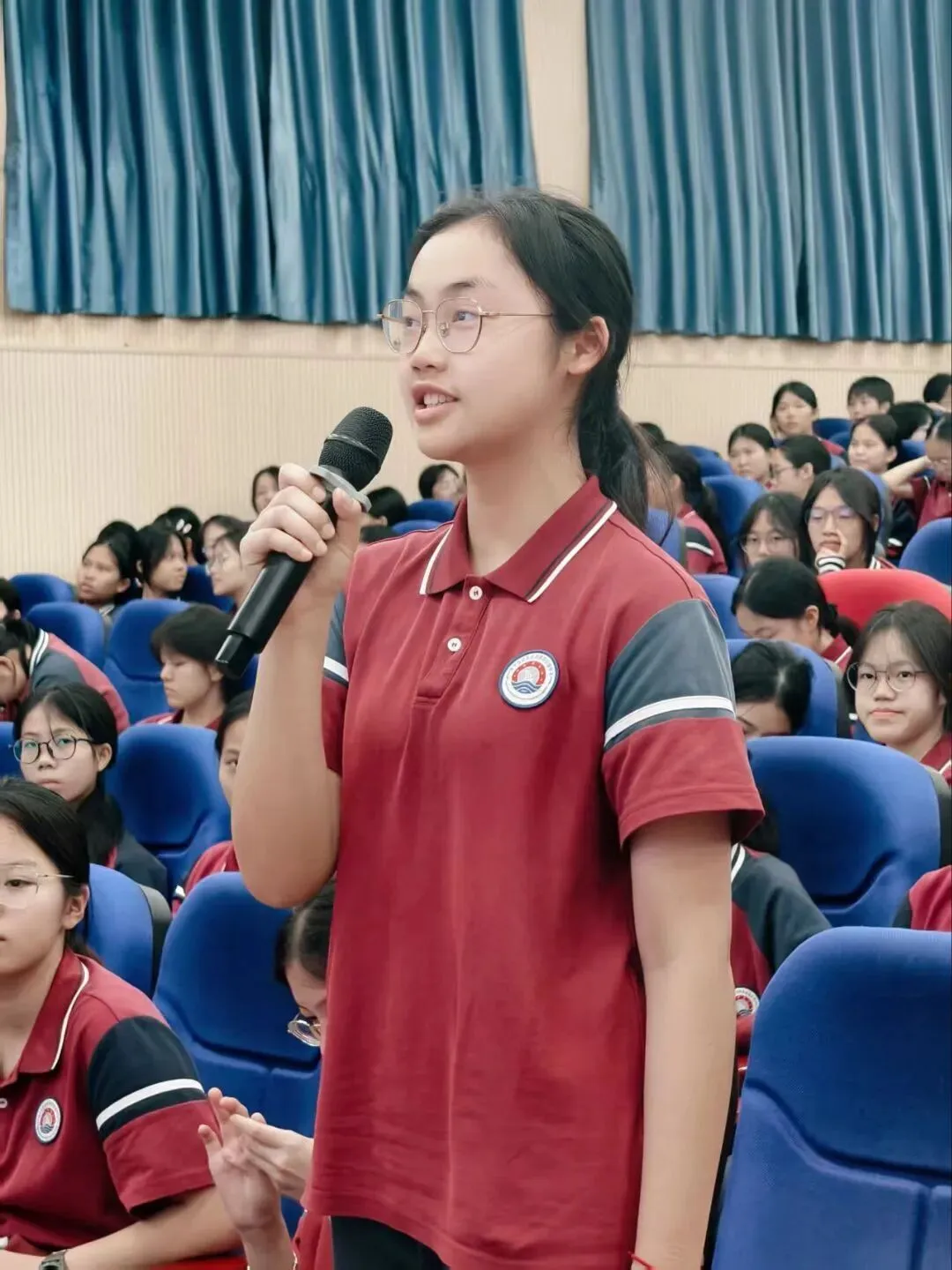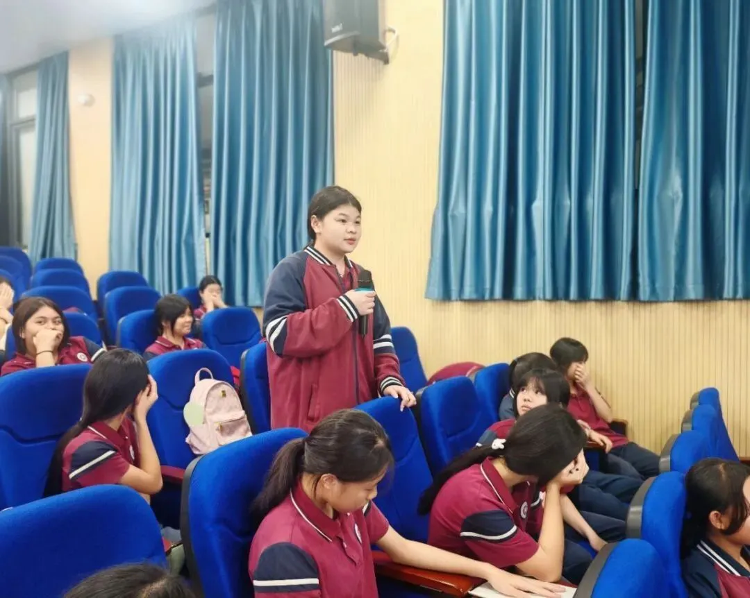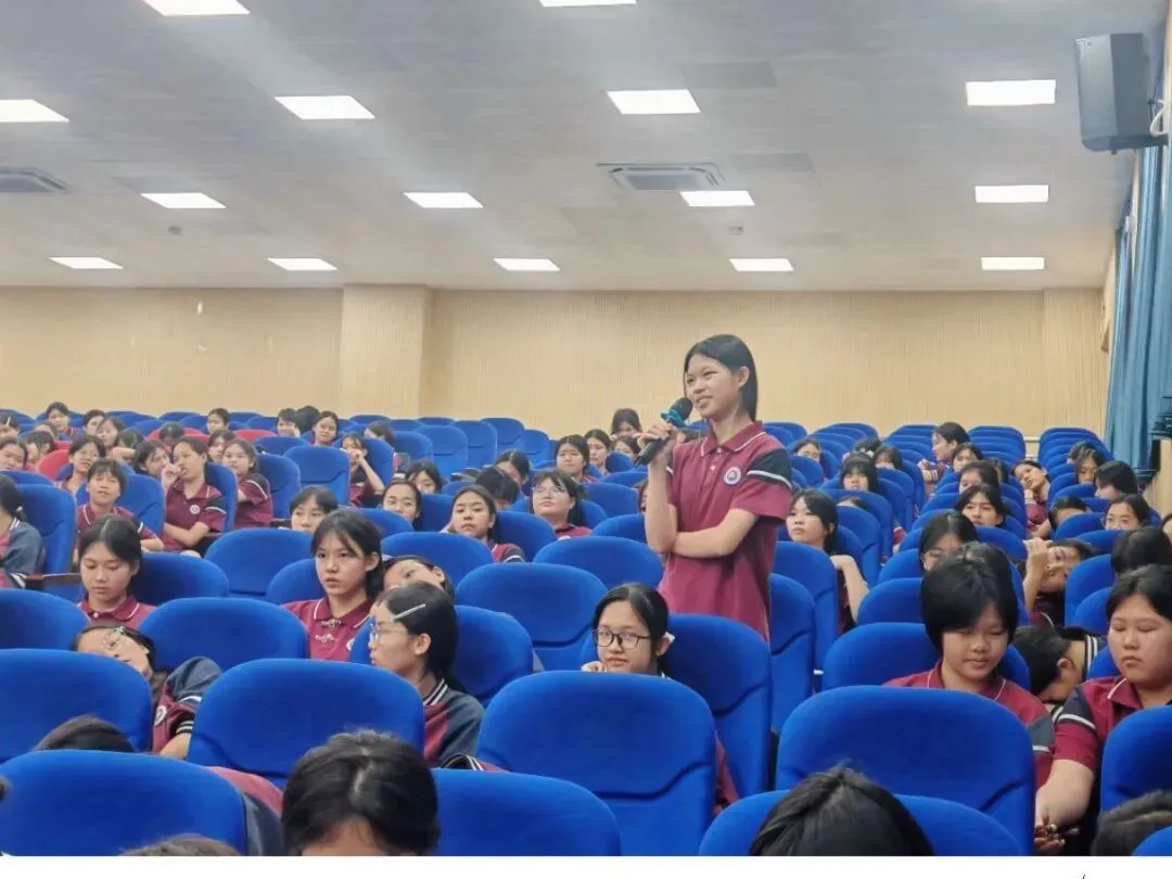 讲座现场氛围轻松热烈,同学们渐渐卸下羞涩、敞开心扉,主动举手提问,踊跃分享内心感悟。大家围绕“如何坚定拒绝不当触碰”“遭遇霸凌第一时间向谁求助”等热点问题展开热烈交流,在沉浸式互动与思想碰撞中,进一步深化了安全知识理解,筑牢了自我防护意识,充分展现出我校女生重视自我保护、向阳向上成长的积极精神风貌。