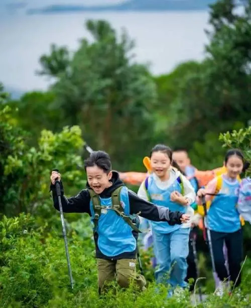 瀑布旁边有很多大小不一的石头,孩子会自己去踩那些石头,试着从这块跳到那块,水流冲刷过的石头表面有些湿滑,他们会小心翼翼地调整脚步,这个过程本身就是在玩。旁边的步道有些是缓坡,有些有台阶,孩子会跑上跑下,累了就蹲在路边看蚂蚁,或者捡树叶,这些看起来很普通的事情,在这个环境里就能让他们消耗掉大把时间,而且是真的在玩,不是那种被动接受刺激的玩。