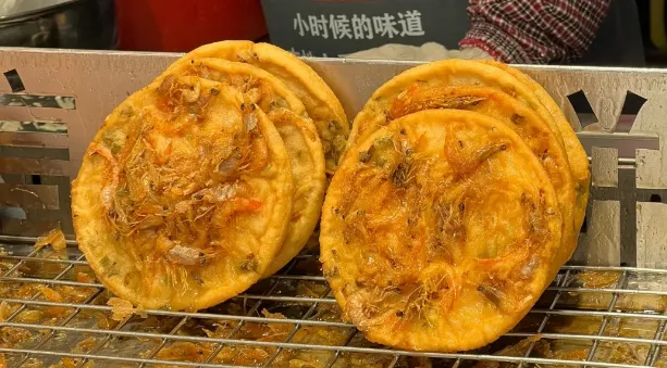 说一道最有烟火气的,侨港风味虾仔饼。做法不复杂,小虾拌米浆,加葱花、盐,有的会撒一点胡椒,舀进铁模里下油锅。炸到两面金黄就起。热的时候最好吃,边缘酥,中心软,带着海味和油香。