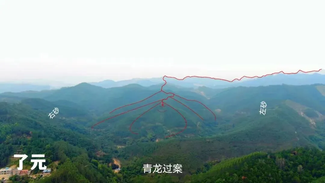 09.无人机于穴星右后方看左砂前,多重青龙砂弯抱,青龙架案。