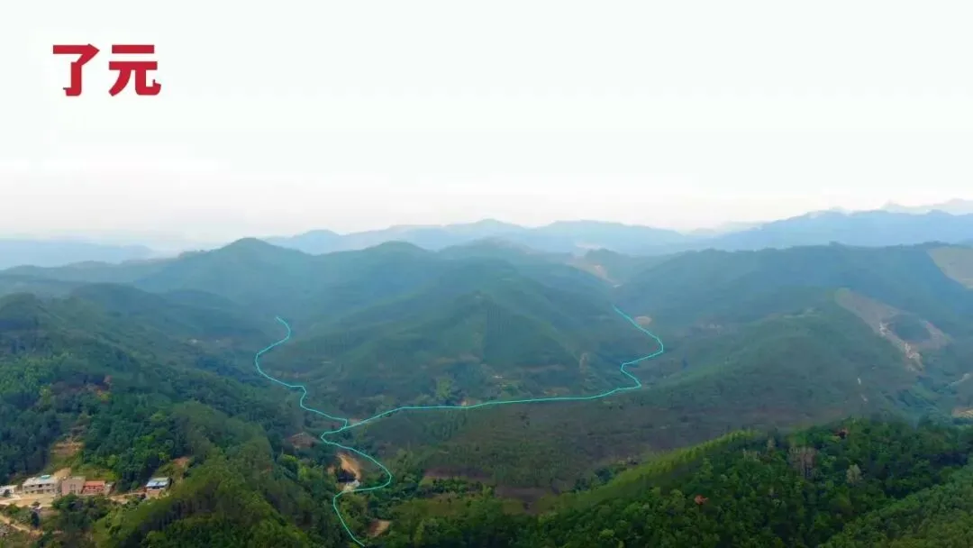 02.无人机于几百米外看水系,蓝色线为水流概况,外面还有一条大山溪水自右向左而流,青龙为下砂过案收外溪水甚力,右水来左砂收,正合阴阳交媾之理。
