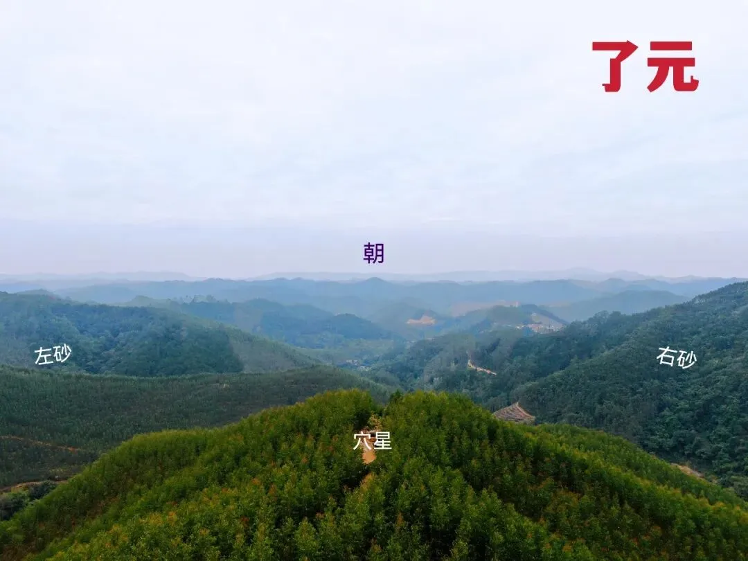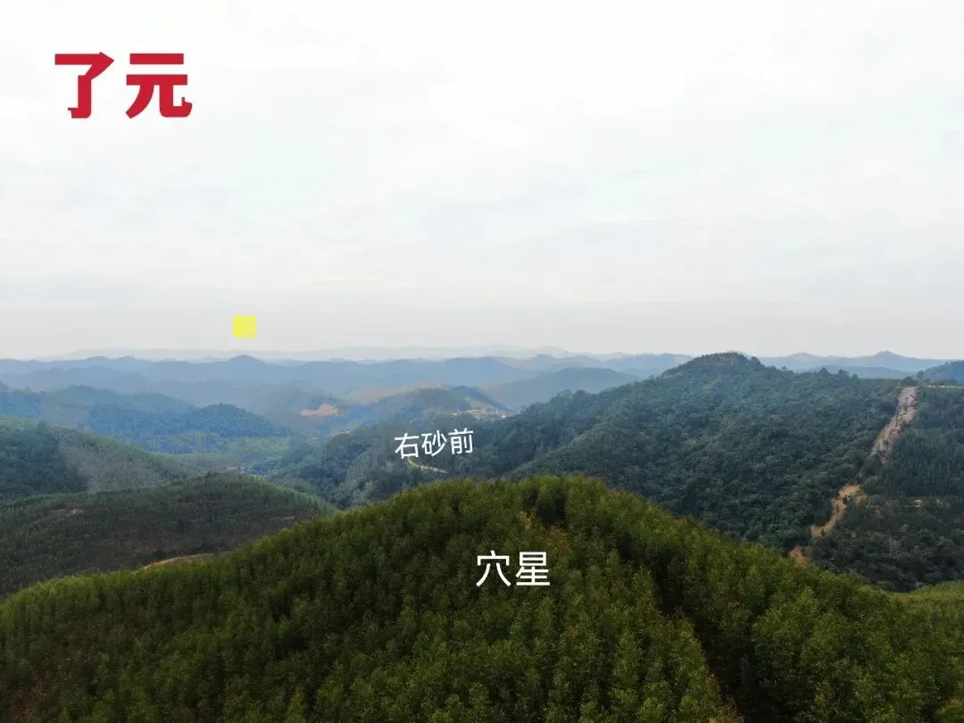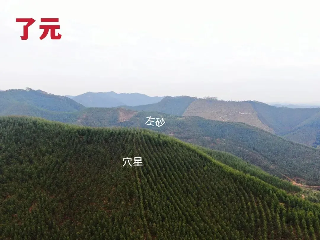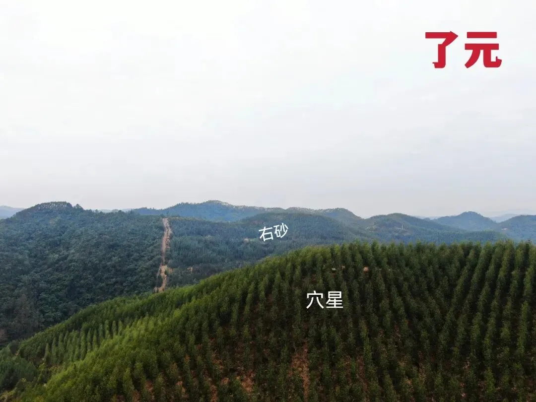 08.无人机于穴星左后方看右砂前,可见白虎伏抱。