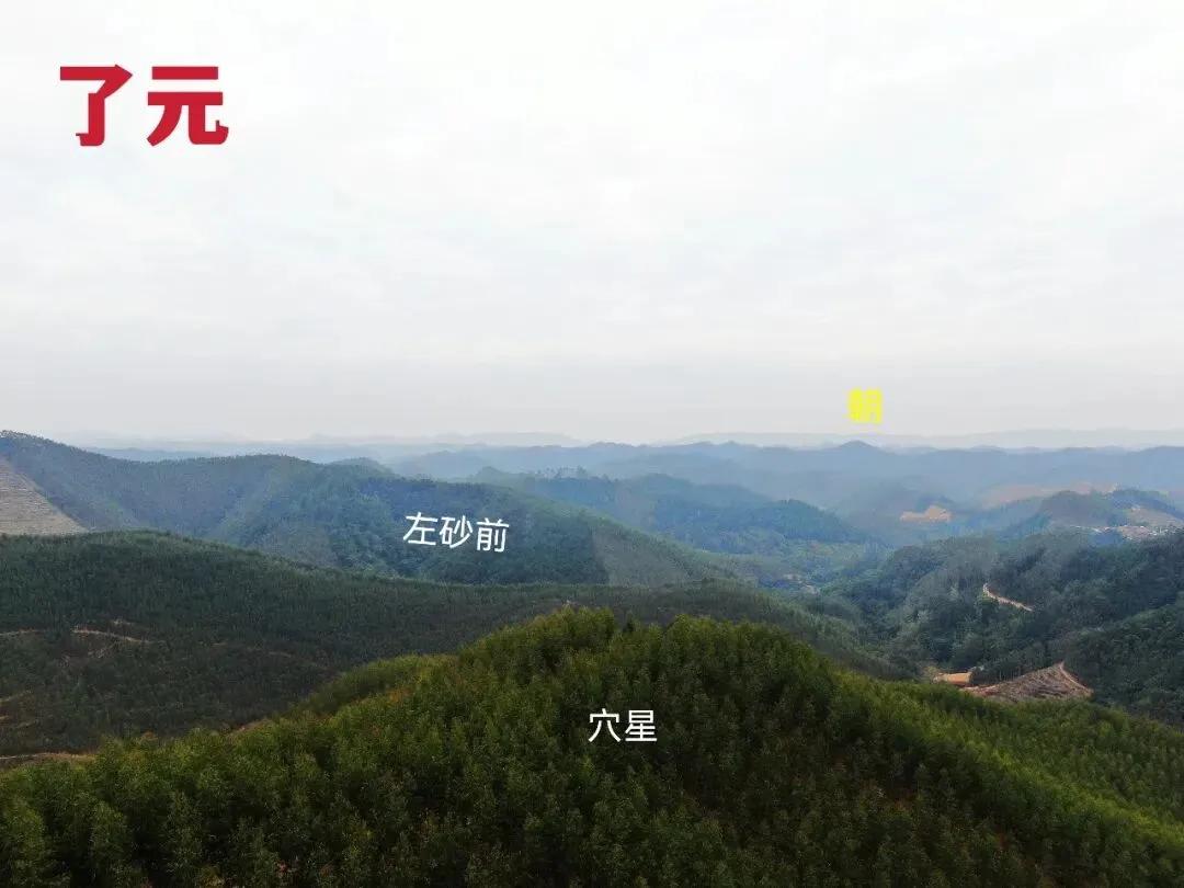 14.于穴场正看前朝,此坟并不朝向尖峰,立向偏左很多,个人认为立向有误。