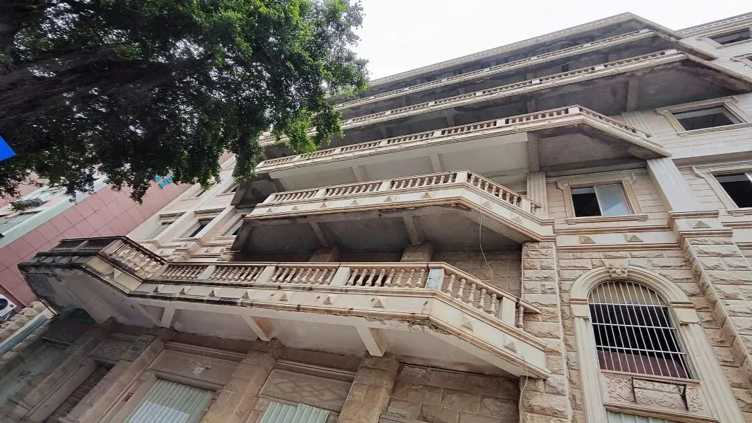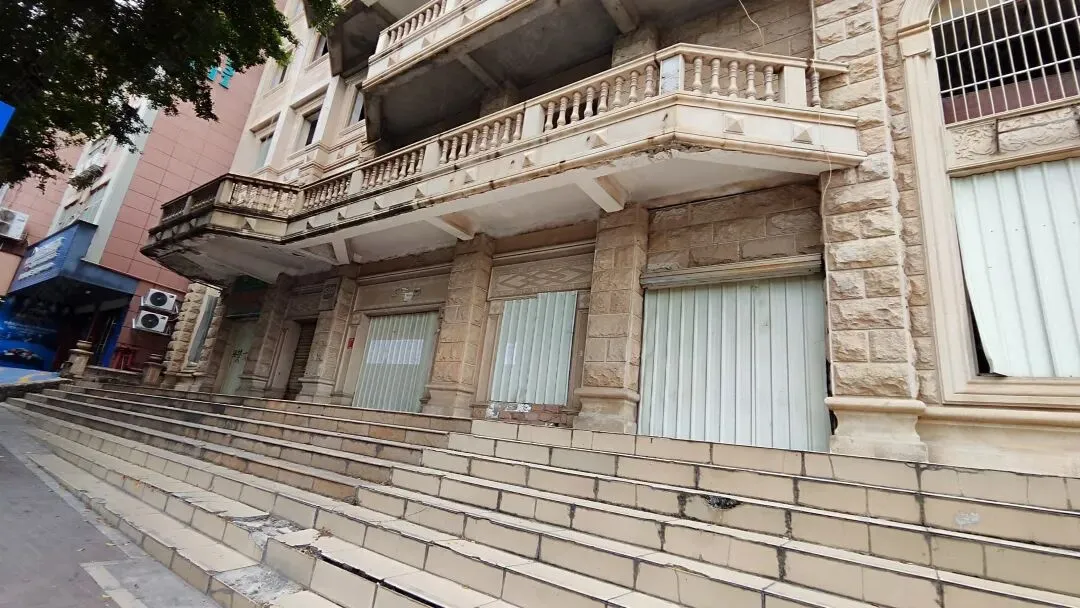 首先看着就觉得冷清、压抑,整栋楼有六层之高,体量庞大,却常年门窗残缺,三楼以上连窗框都没有,黑洞洞的窗口,像无数双沉默的眼睛望着路人。白天尚且还好,一到傍晚,路灯打在斑驳的大理石墙面上,树影在空荡的阳台上来回晃动,远远望去,总让人觉得楼里藏着说不清的安静。恰如 “空楼月惨凄,古殿风萧飒”,夜色一落,连风都带着几分说不清的压抑。