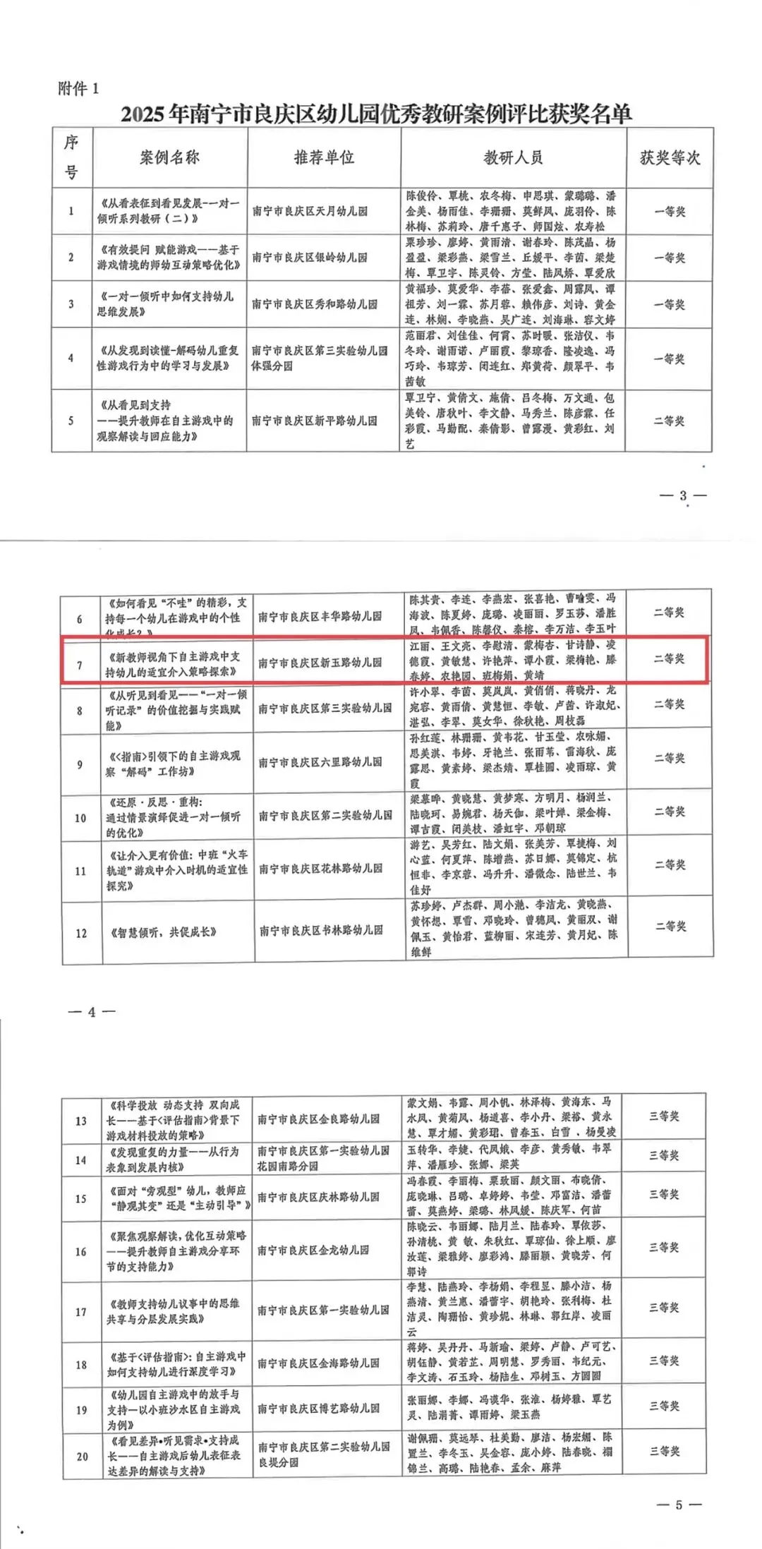 【喜报】热烈祝贺南宁市良庆区新玉路幼儿园在2025年城区幼儿园优秀教研案例评比活动中荣获佳绩