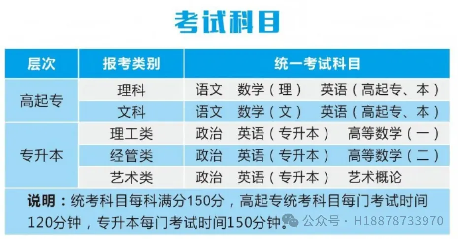 成人高考考试科目:政治、英语(专升本)、民法(三科满分是450分)