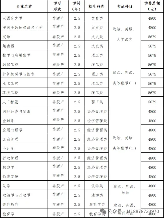 经管类:行政管理、法学、会计学、财务管理、人力资源管理、工商管理、金融学、应用心理学、经济学、社会工作、市场营销、档案学、治安学、侦查学、公安管理学、监狱学、社会工作