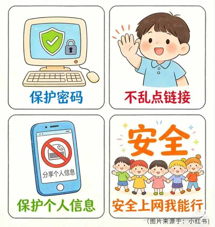 带孩子外出游玩时选择正规安全场所并全程看护。教育孩子提高警惕,不轻易相信陌生人,不接受礼物或跟随离开。网络安全方面,引导孩子健康文明上网,合理安排上网时间,避免沉迷网游或短视频;教育孩子不点击不明链接,不泄露个人及家庭敏感信息;家长要关注孩子上网内容,及时沟通引导,帮助其树立正确网络安全观念,提高对网络诈骗和不良信息的辨识防范能力。