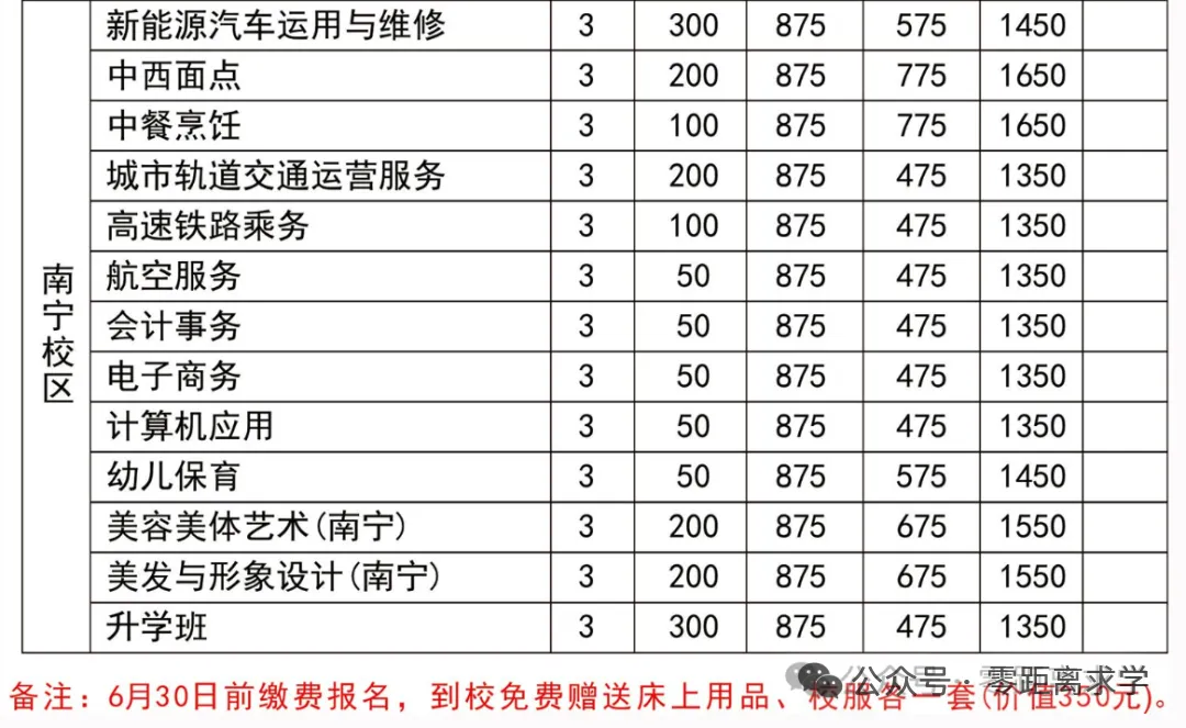 2. 其他费用:住宿费300元,教材费300元,升学培养费1600元(普通班收四个学期,升学班收完6个学期)