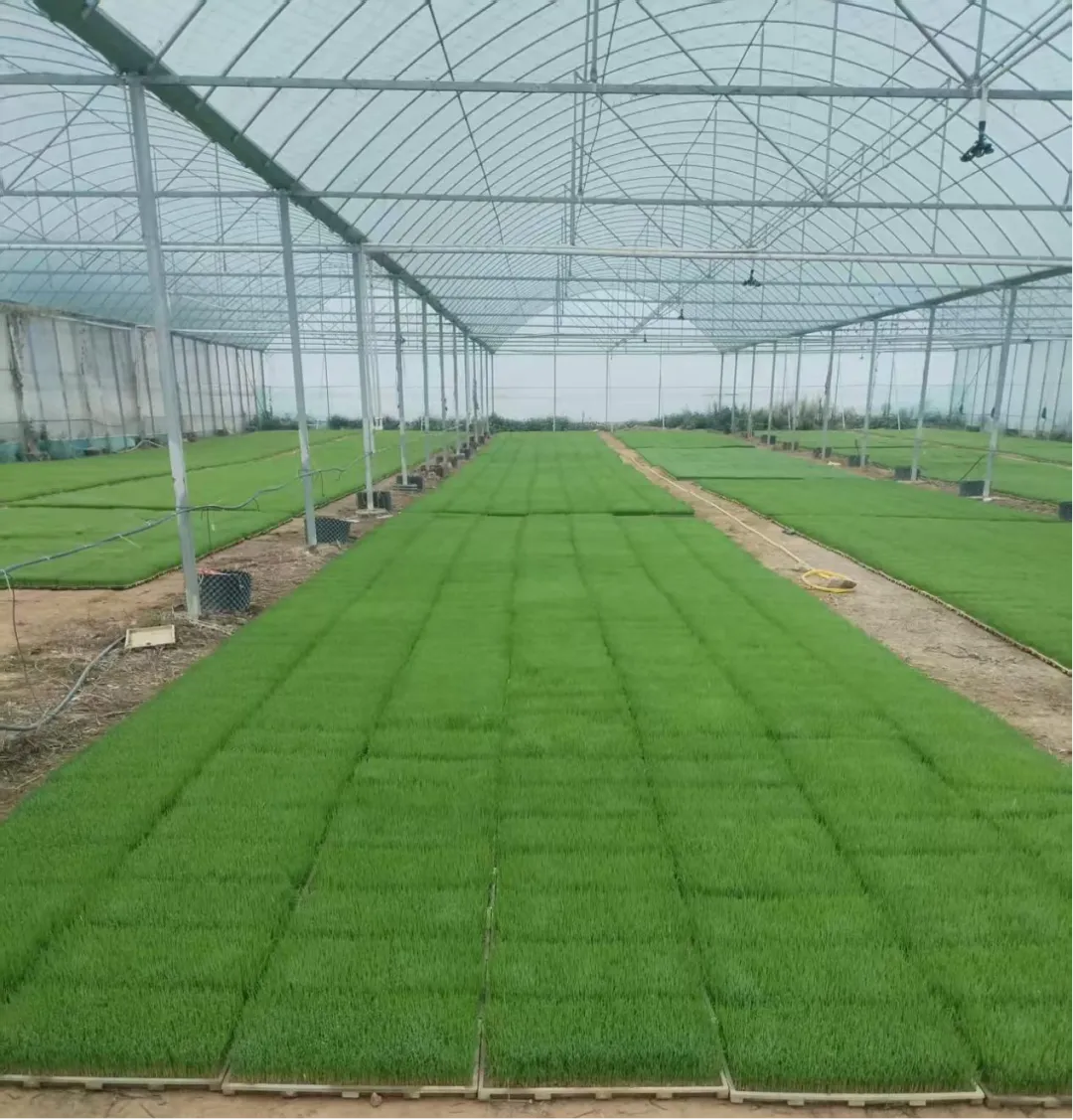 与此同时,八桂种业公司同步推进工厂化集中育秧,通过精准控温、科学水肥管理,确保秧苗长势整齐、健壮均衡,为高产稳产筑牢种苗根基。温室大棚内,一盘盘秧苗整齐排布、长势喜人,嫩绿的秧叶挂满露珠,生机盎然,展现出良好的生长态势,为即将到来的插秧季提供了充足优质的种苗保障。