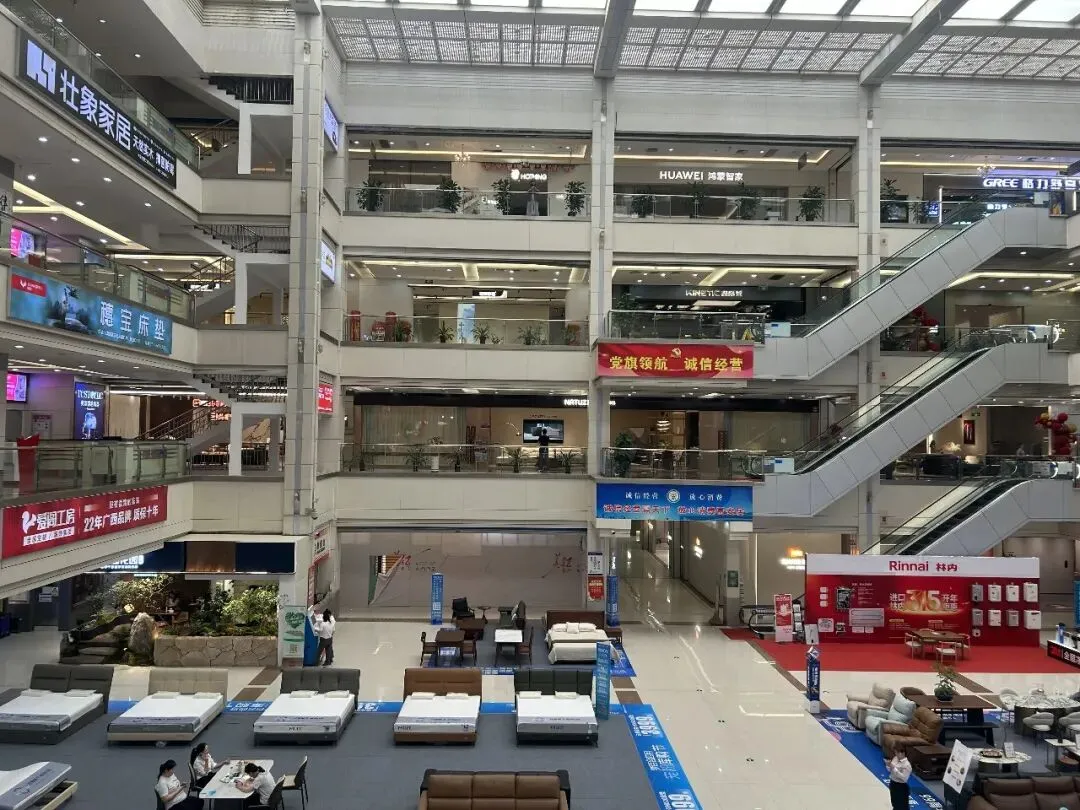 商场占地约90亩,经营面积约15万㎡,上下共6层,业态包含家居建材、家具电器等,是一站式的家居卖场。