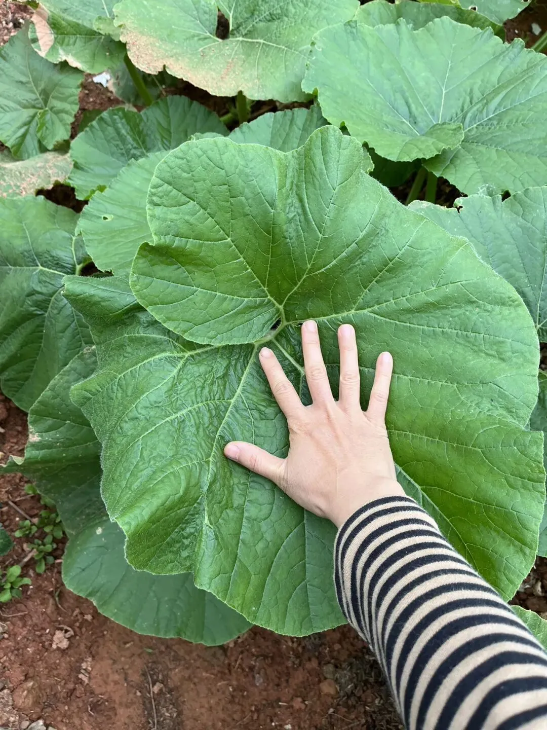 之前给南瓜苗施用有机肥,配合浇灌水果酵素,目前效果明显:茎秆粗壮、叶片宽大厚实,整体长势健壮。有机肥+酵素能改良红壤土结构、促进根系发育,为后续开花结瓜打下基础。