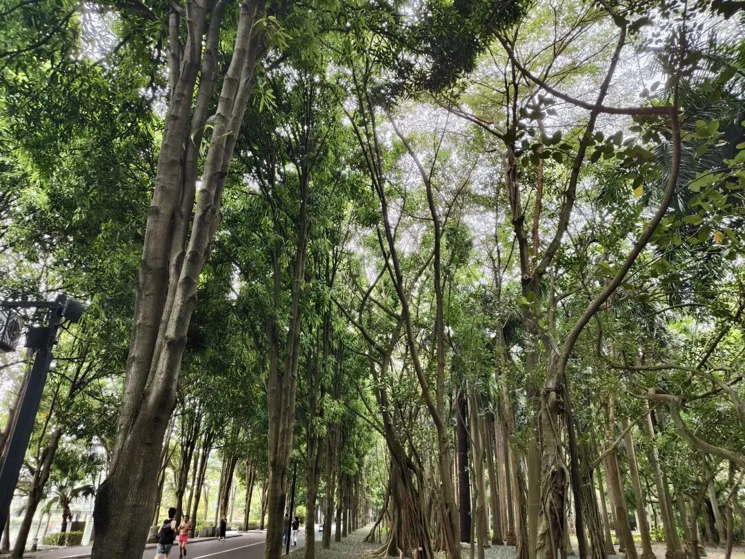 林荫道上散步锻炼的人三三两两。晚上人更多,路面都是人。很多人不住附近晚上也来锻炼散步,名气真大呢。