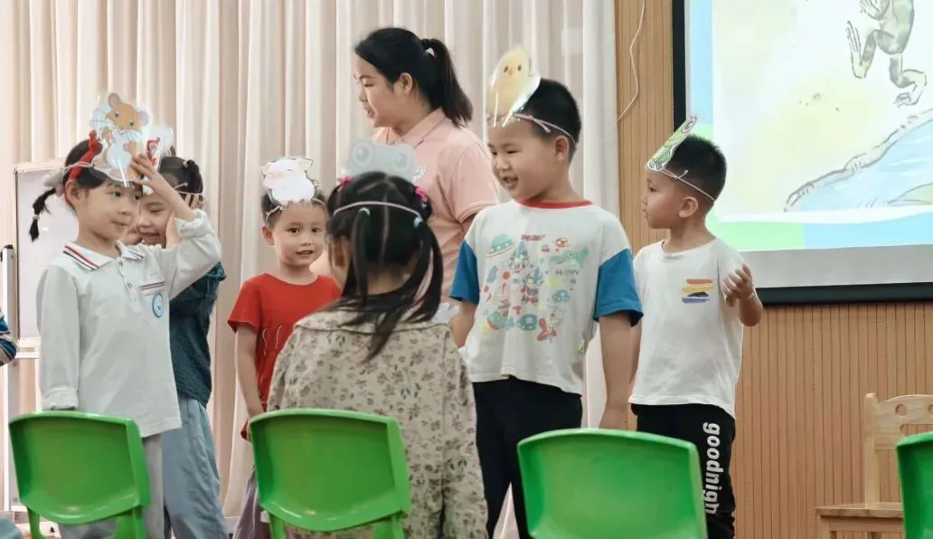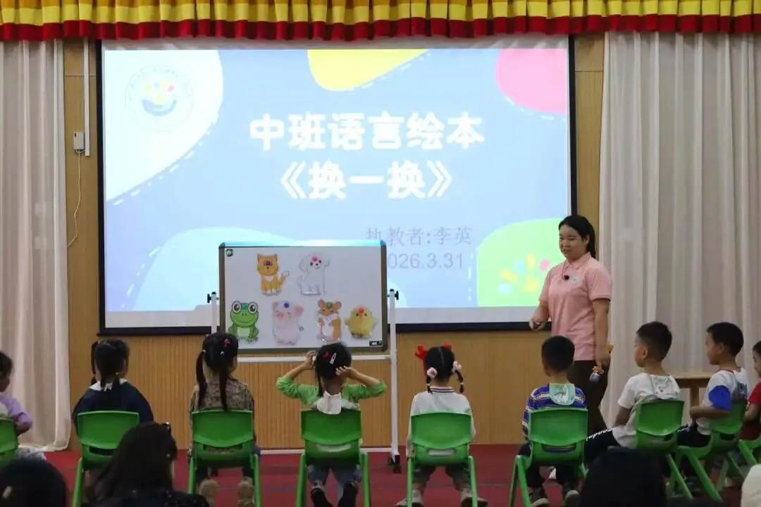 由李英老师现场展示中班绘本示范课《换一换》,以“读玩演”为核心,呈现生动鲜活的绘本课堂。李老师通过趣味互动、情境演绎、游戏体验等多元形式,带领孩子们沉浸式走进绘本世界,直观展现“读玩演”融合教学的实践魅力。