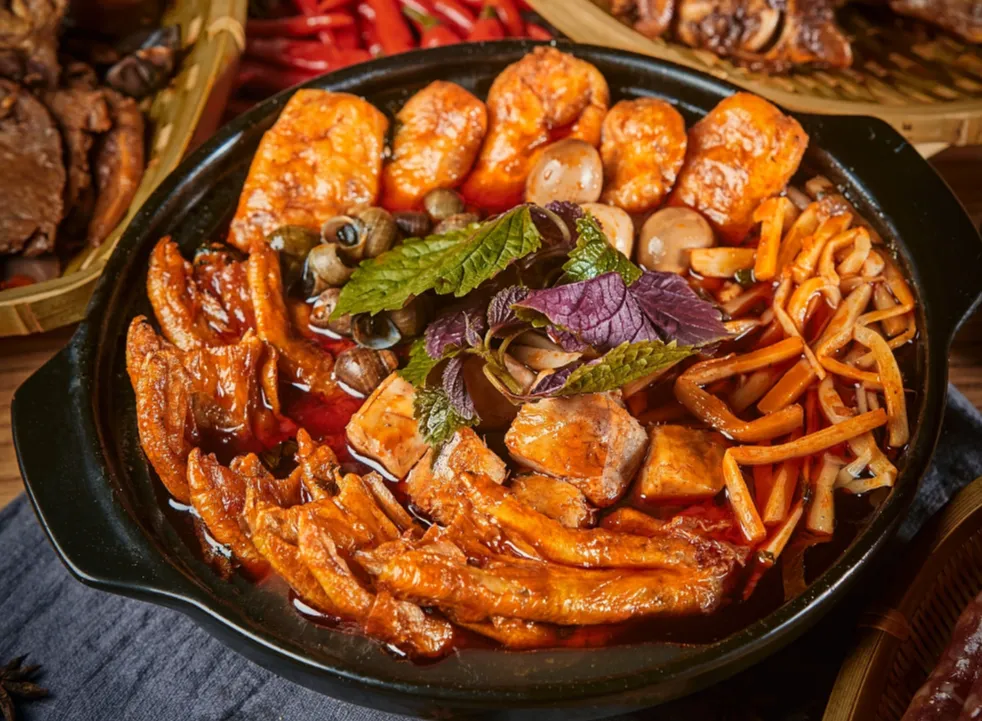 田螺鸭脚煲,是刻在广西人骨子里的味道,更是南宁的城市饮食符号,起源于民间夜宵摊,经过多年改良,成为如今的特色美食。从老南宁的传统田螺鸭脚煲,到柳州香辣款、百色酸笋款,每一款都承载着当地人的情怀与记忆。它以“鸭脚软糯脱骨、田螺鲜香无腥、汤底浓郁够味”为核心特色,搭配酸笋、腐竹、炸蛋等配料,鲜辣过瘾、越煮越香,吃过一次,天天都想来。