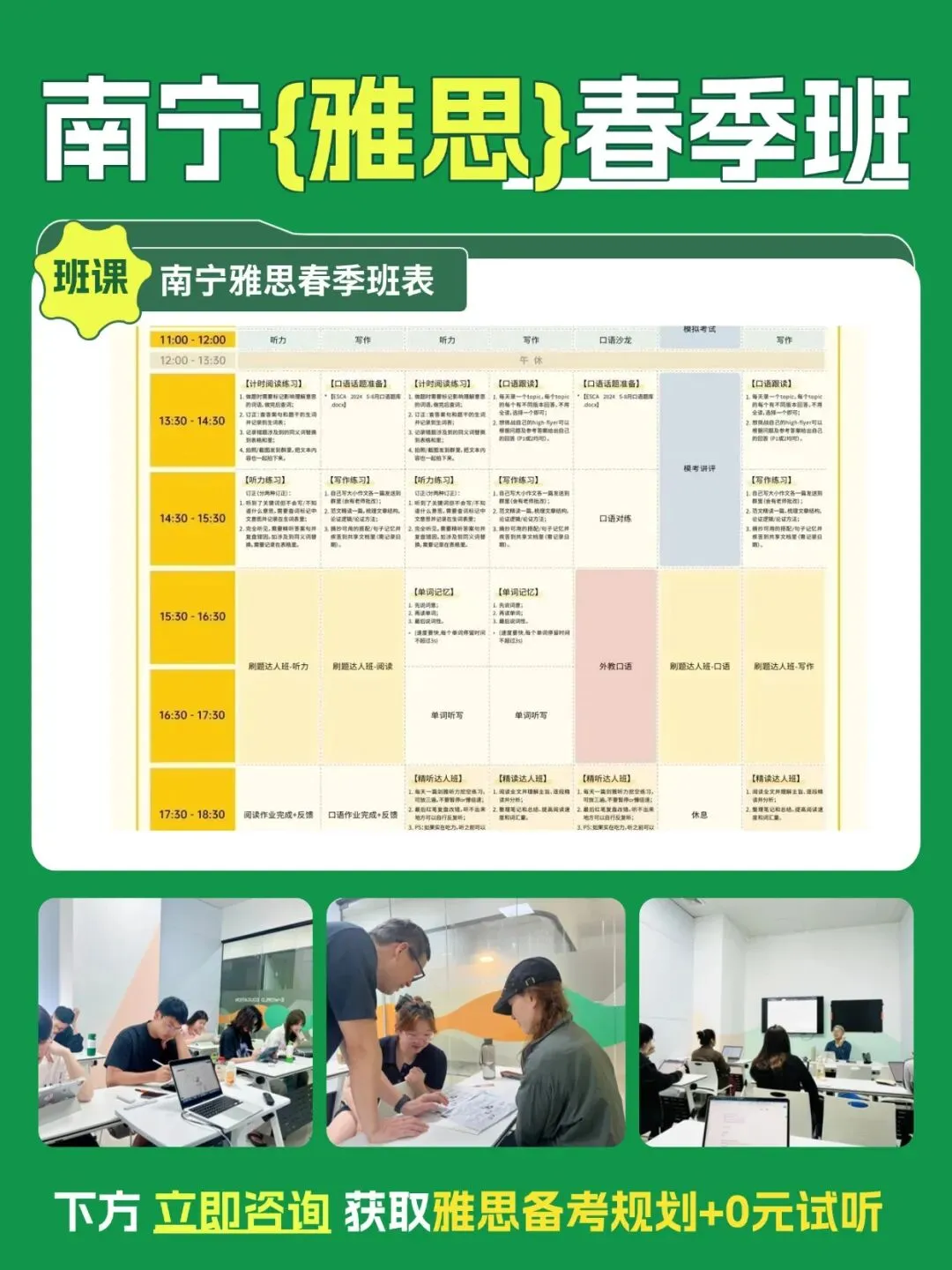 所以在英沃,我们主打的就是一个**“实在”。我们想把这份难得的“安全感”**,写进我们精心打磨的【雅思春季集训班】里,带你真正走出泥潭,高效出分。