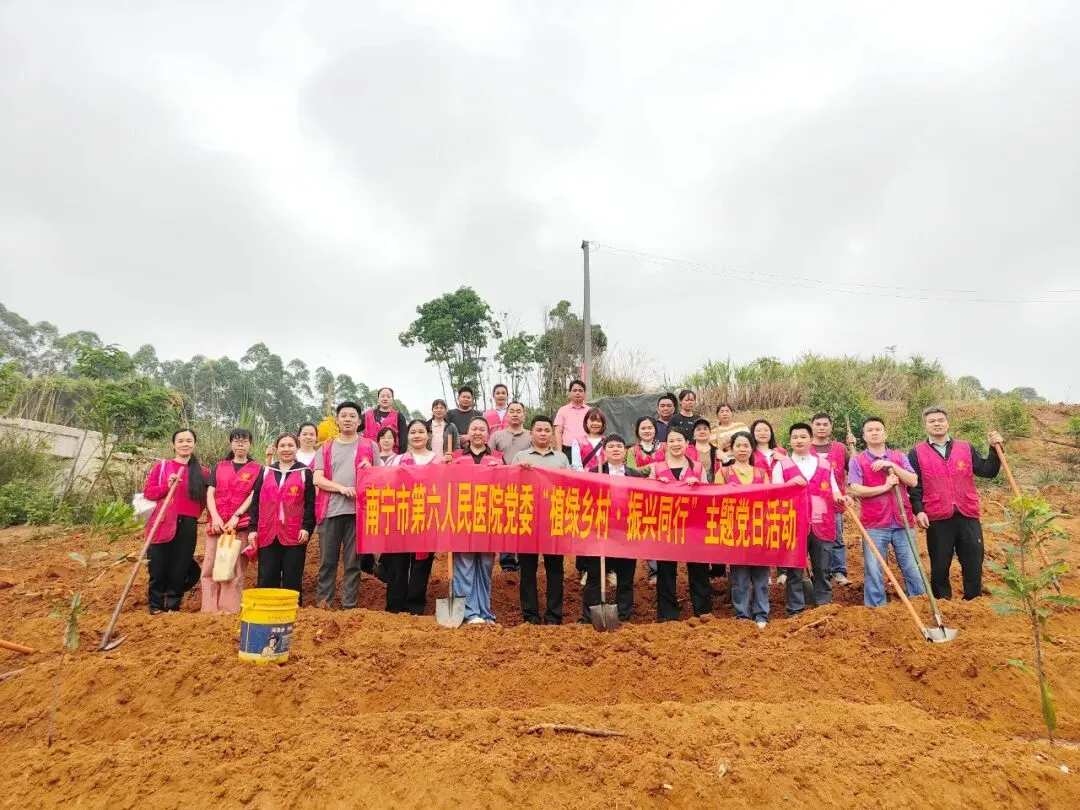 为深入贯彻落实乡村振兴战略部署,牢固树立生态文明建设理念,充分发挥基层党组织战斗堡垒作用与党员先锋模范作用,4月2日下午,南宁市第六人民医院党委副书记、纪委书记李碧玉同志带队,组织 20 名党员志愿者赴中和镇平天村,开展“植绿乡村・振兴同行”主题党日活动,以实干举措赋能乡村生态振兴。