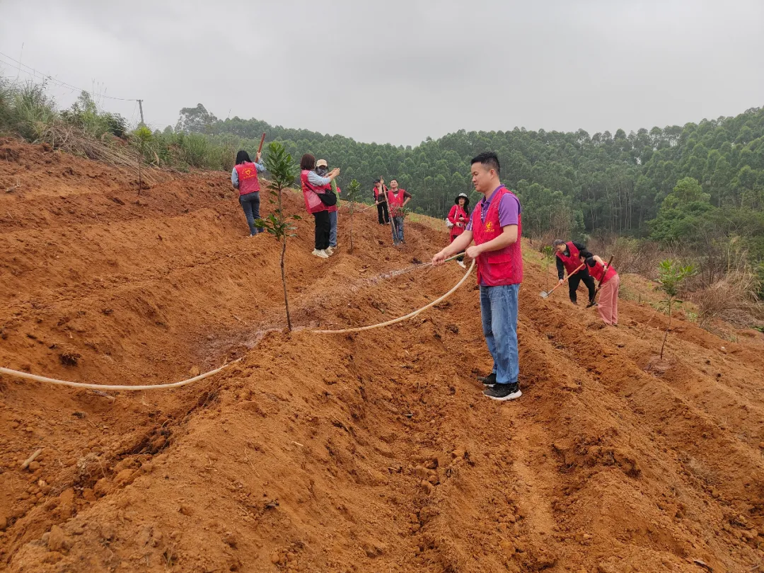 活动现场,党员志愿者在平天村“两委”干部的配合下,迅速完成分工,有序开展植树作业。大家挥锹挖坑、扶苗定植、回填培土、踩实固根、引水浇灌,全程衔接顺畅、干劲十足、配合默契,尽显党员志愿服务风采。经过全员通力协作,一株株树苗稳稳扎根田间地头,为帮扶村落添绿增彩。