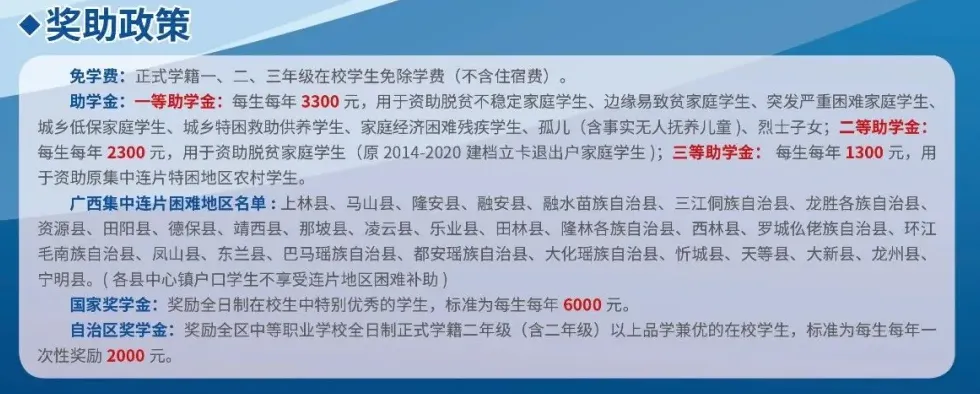 4.巴马职业教育圆梦班,即巴马农村户籍的学生:入学取得学籍后可获得学校免一年教材费和赠送三套校服。