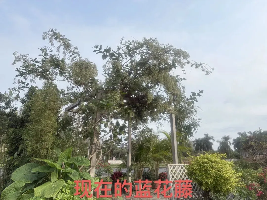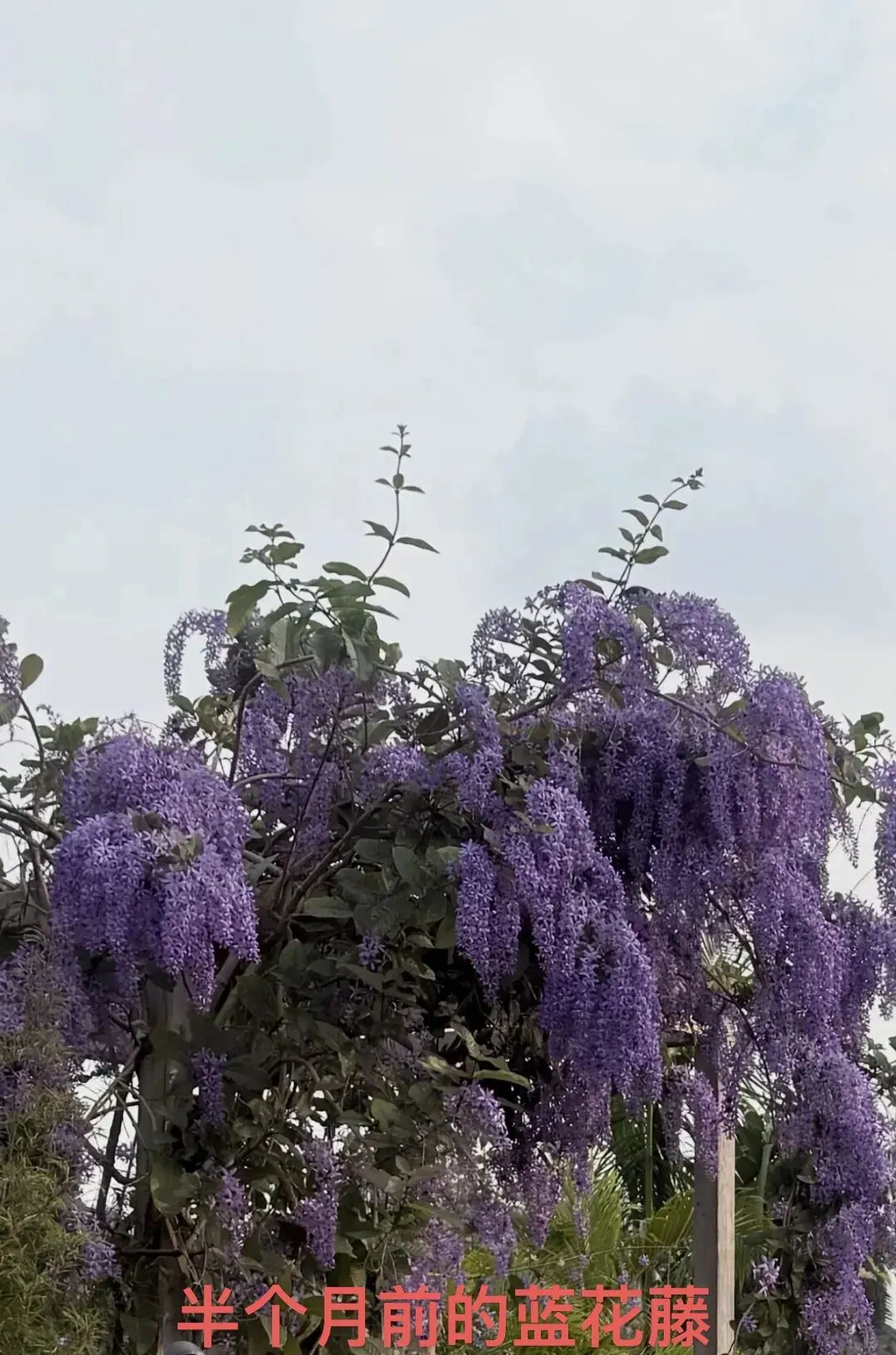 经过花卉公园,想起半个月前盛开的蓝花藤,满树紫霞吸引了许多人前来观赏。
