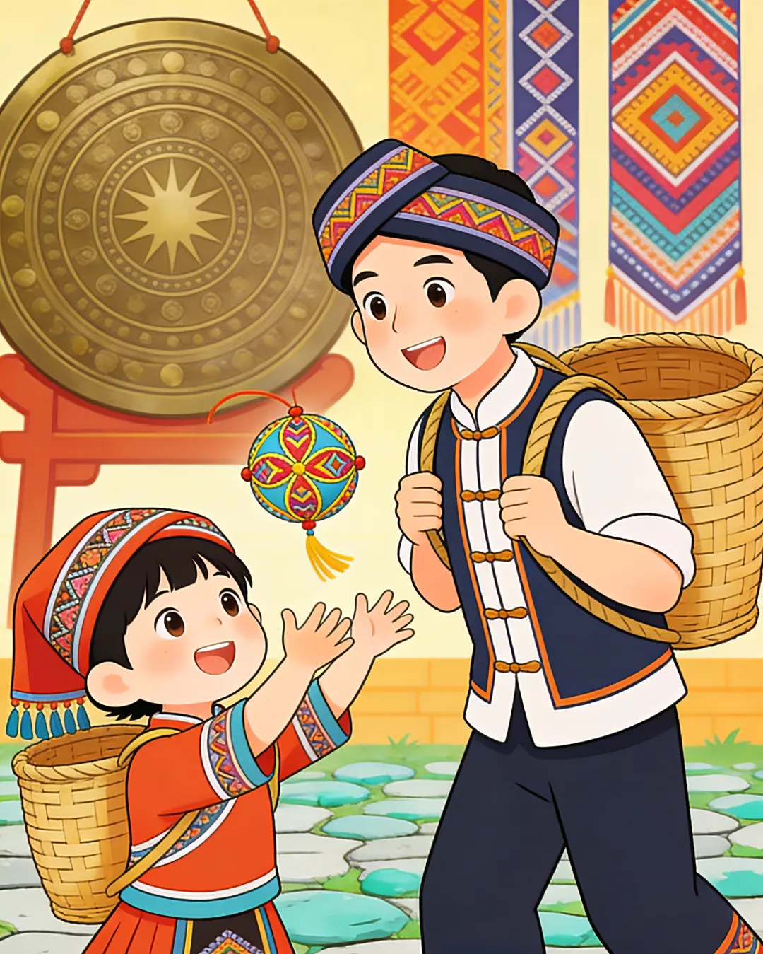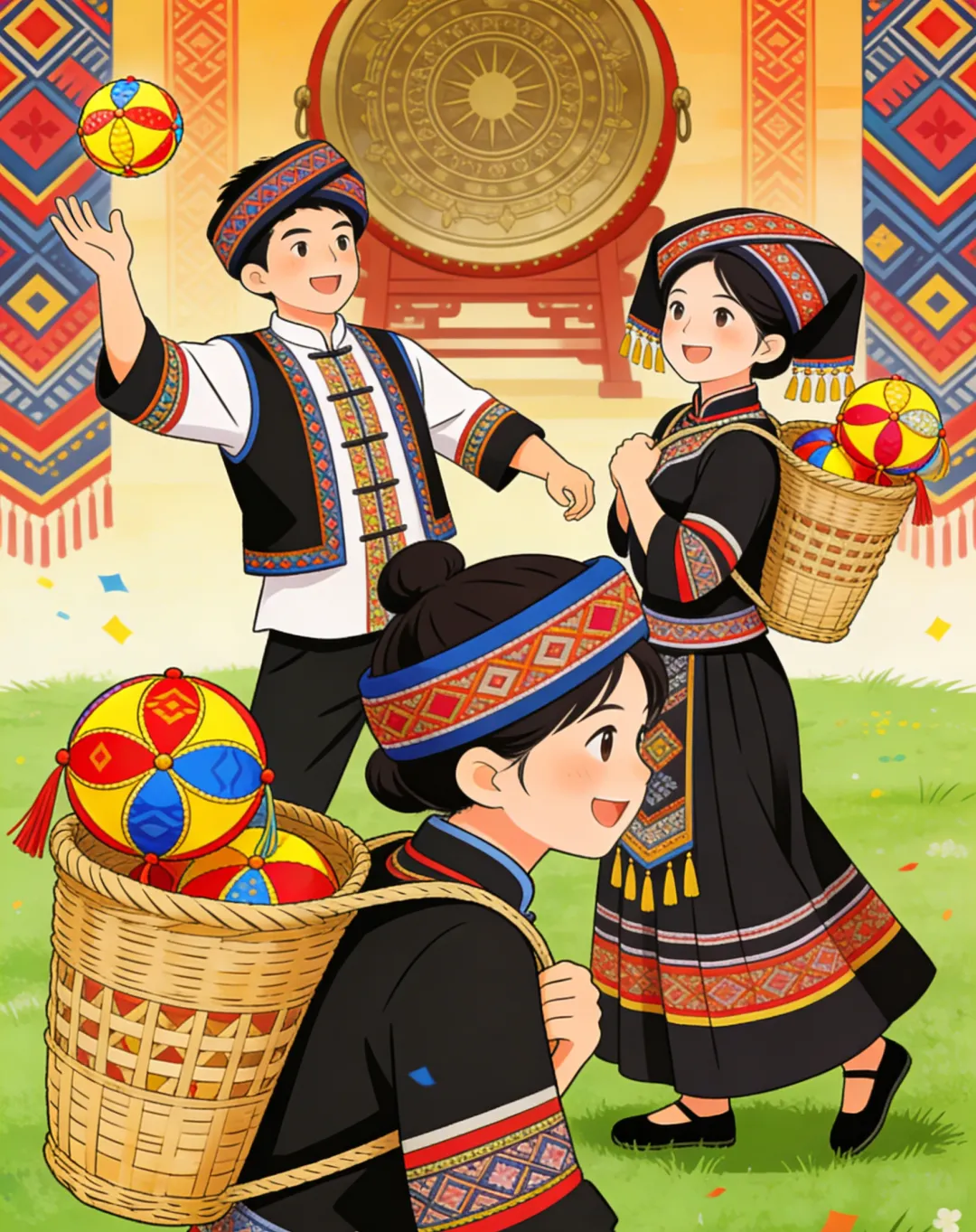 ⭐️每两人一组组队参赛,一人背负特制壮乡福篓,一人手持绣球投掷