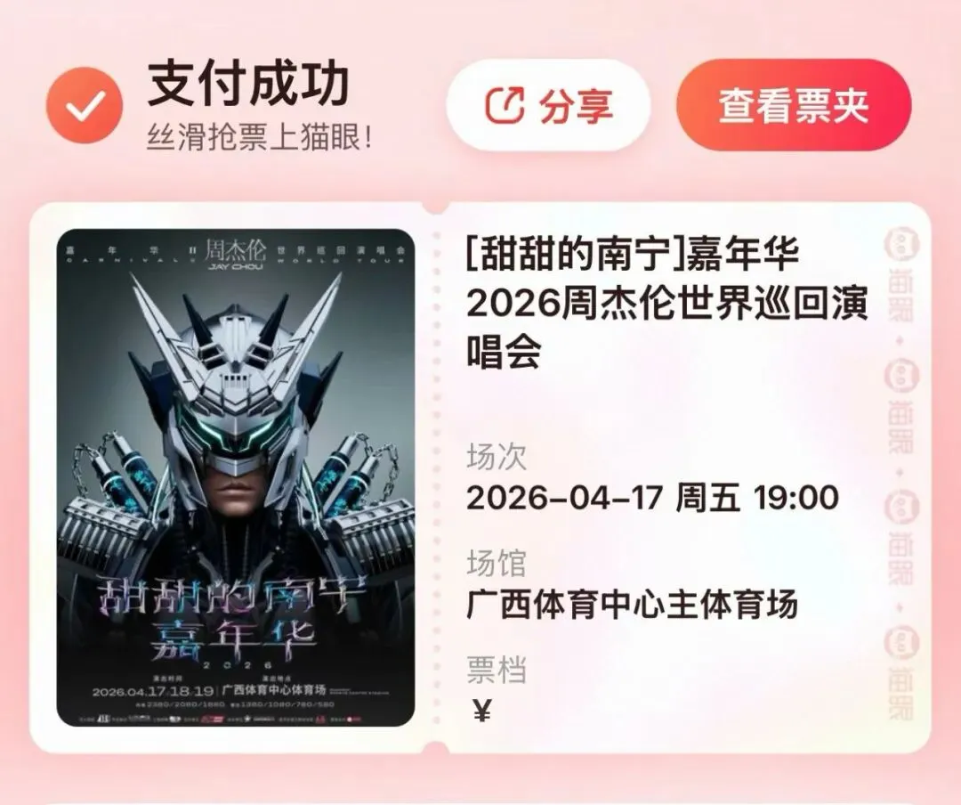 🎫[甜甜的南宁]嘉年华2026周杰伦世界巡回演唱会门票(纸质/电子版均可),即可兑换南宁乡谣里门票一张。