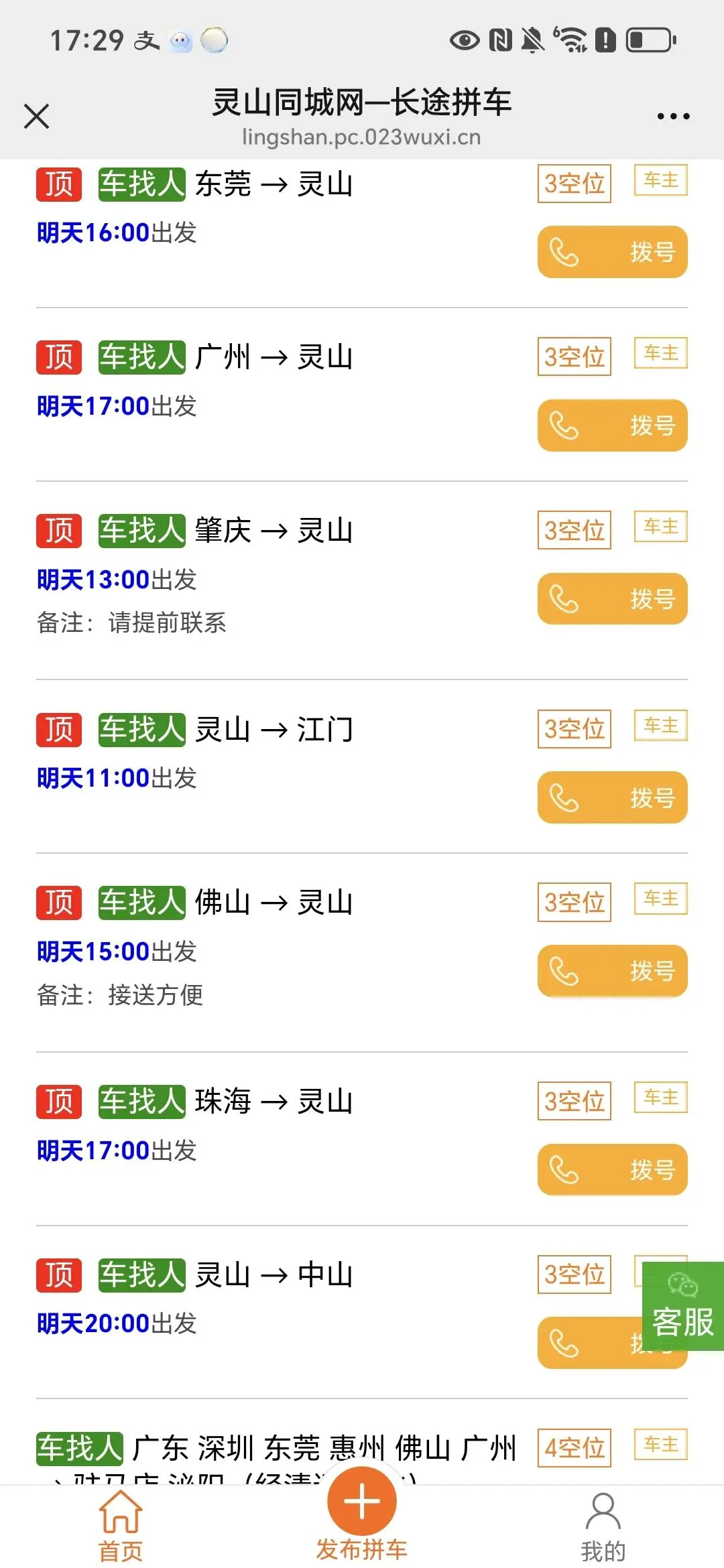 进入灵山同城网长途拼车