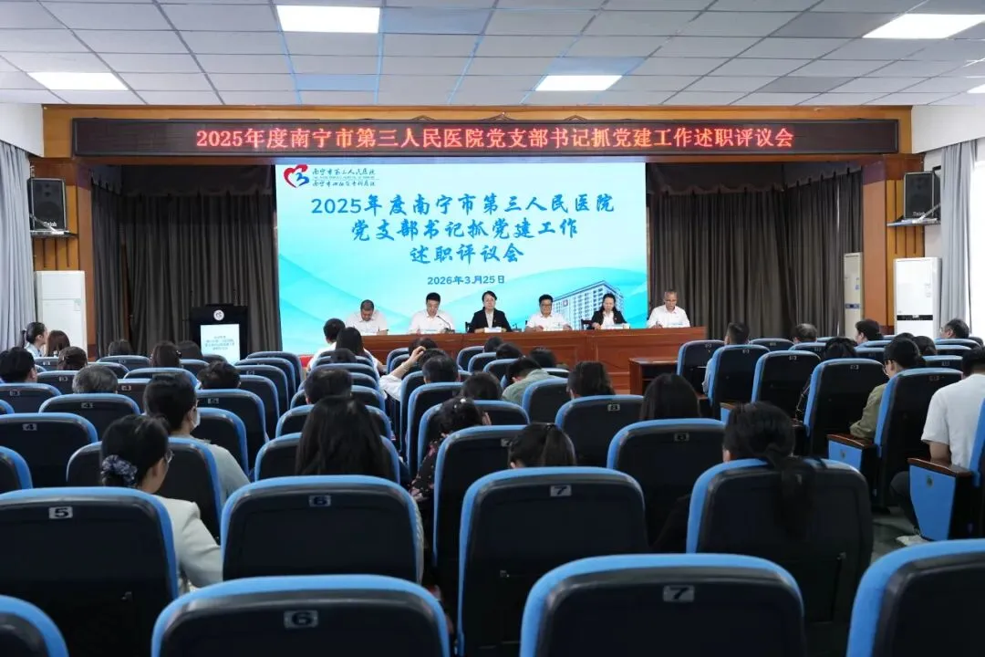 述职评议会结束后,接续召开了2026年南宁市第三人民医院党的建设及党风廉政建设工作会议。会议深入学习贯彻党的二十届四中全会和全国两会精神,同时传达了党中央、自治区党委、市委及市卫健委党组关于党的建设和全面从严治党的部署要求,总结回顾2025年医院党建、党风廉政建设及意识形态等党的建设工作,研究部署2026年党建重点任务。