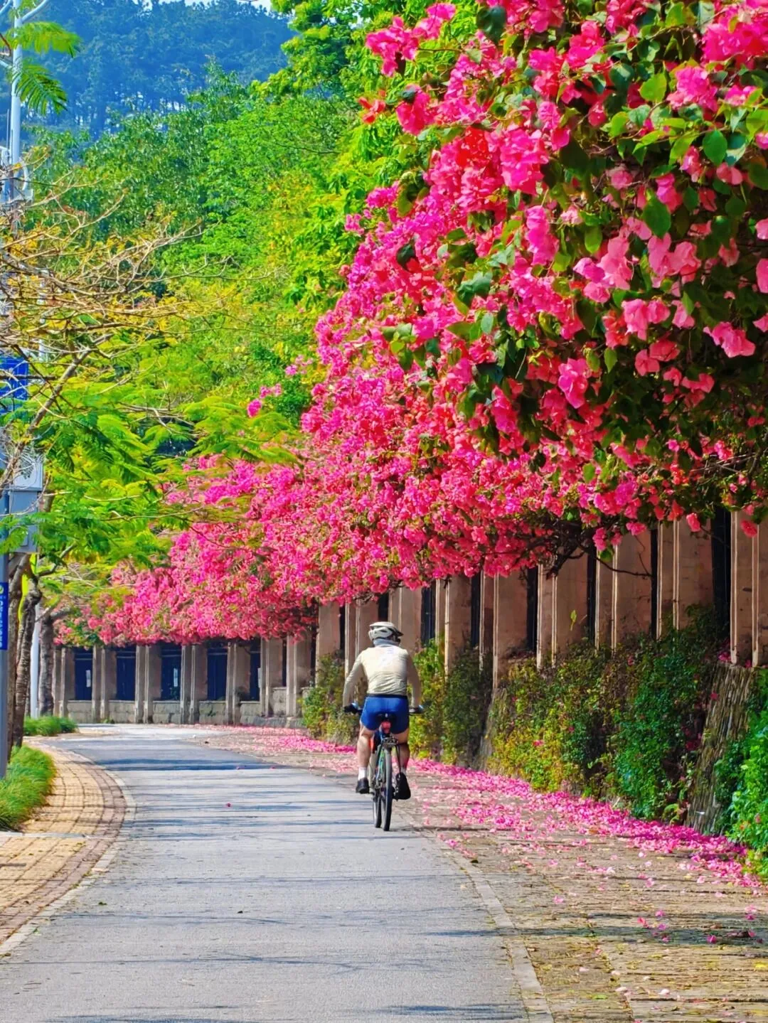 网友@干饭不积极 投稿:沿着青环路走一走,被满路三角梅治愈。风一吹,都是春天的颜色。