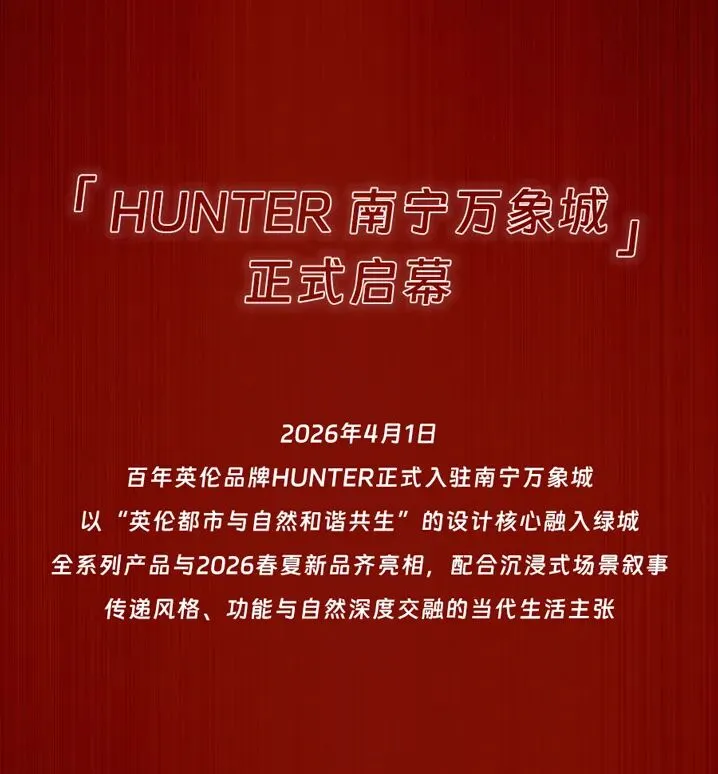 >HUNTER南宁万象城店正式启幕