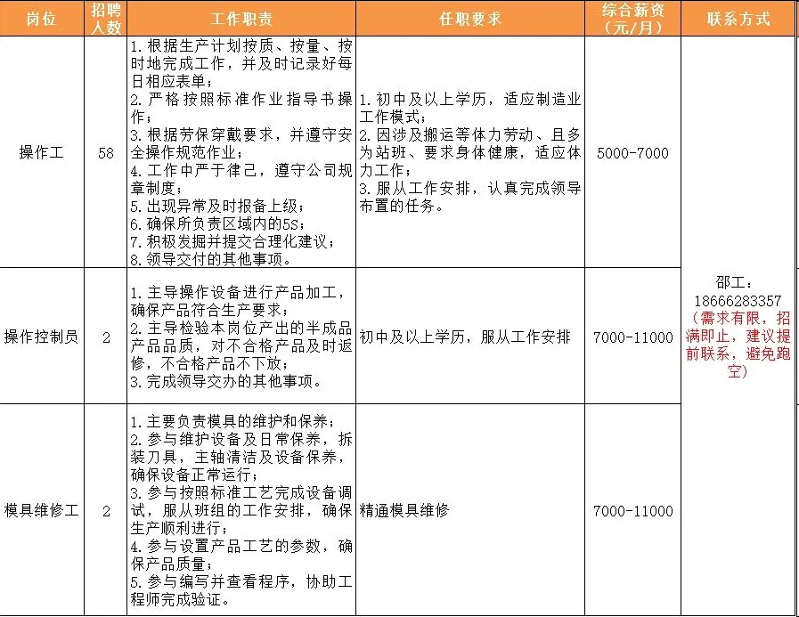 提示:本公众号所有招聘内容均为转载,不收取任何费用,报名咨询详询招聘单位人员,以防受骗。