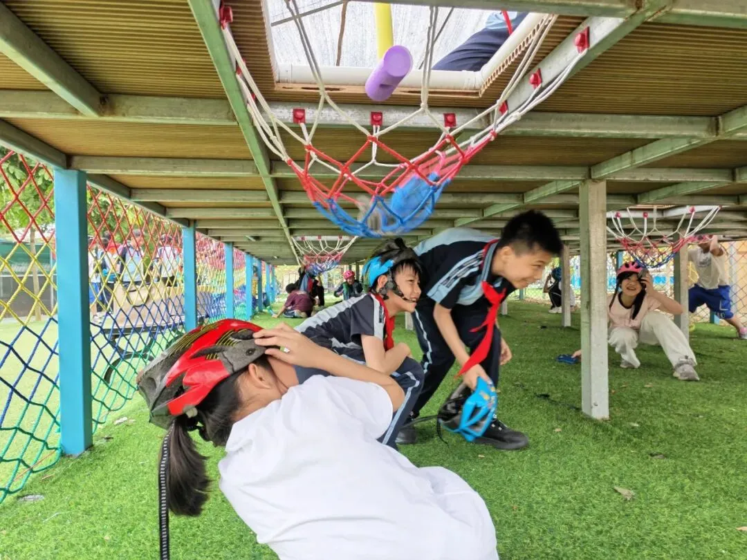 午后,同学们开启“趣玩农场”体验,基地丰富的项目让大家尽情释放天性。水池中,大家挽袖卷裤抓泥鳅,锻炼眼力与敏捷度;“打地鼠”游戏中,大家配合默契,提升应变与协作能力;溜索与彩虹滑道上,同学们克服胆怯、挑战自我,在欢声笑语中展现新时代少年的蓬勃朝气。