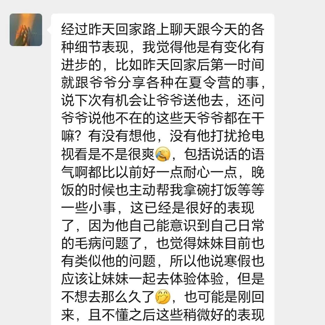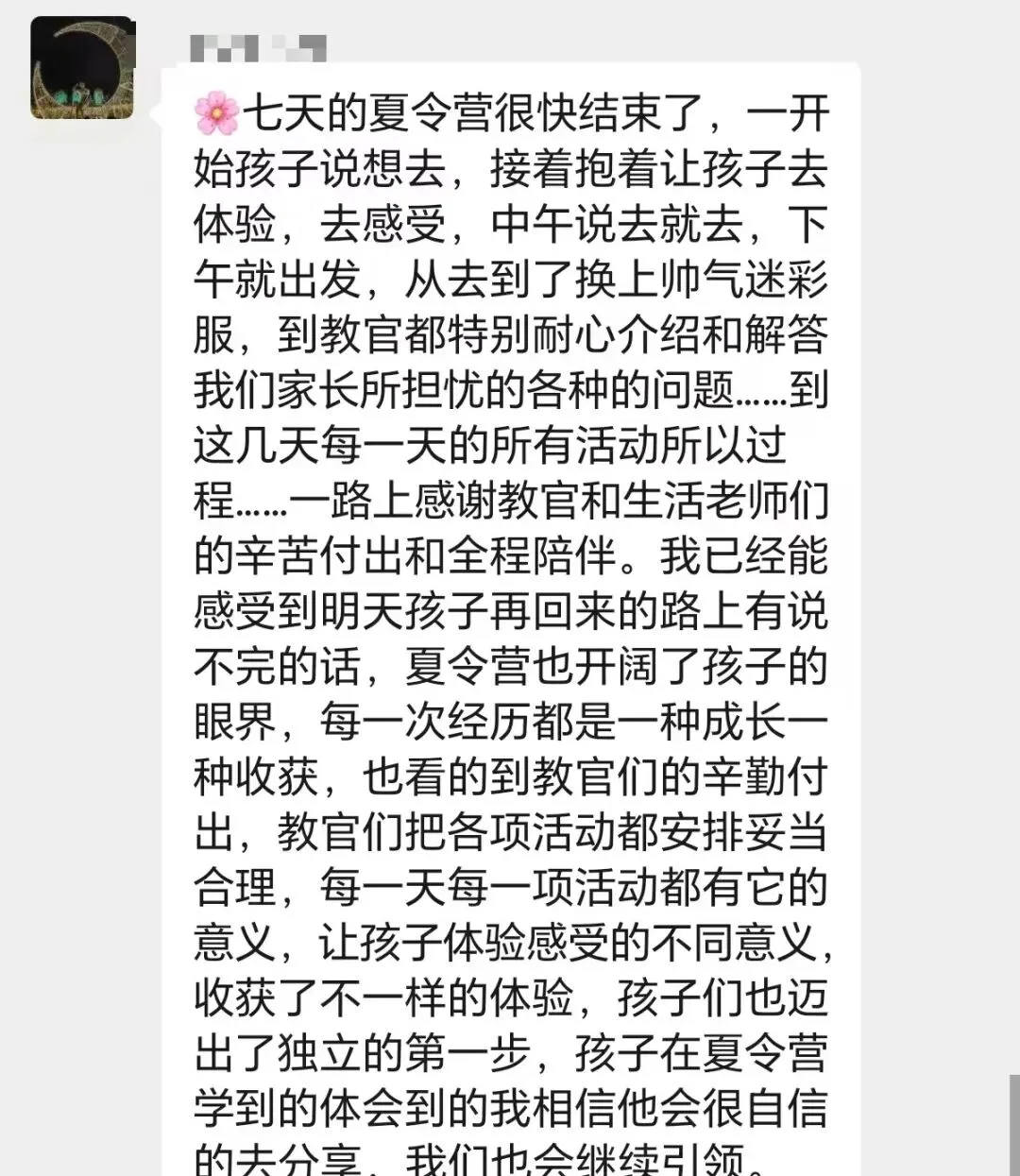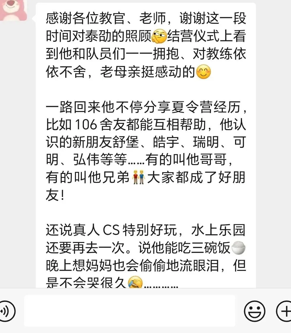 根据我们的经验,基本都会第一天晚上快到睡觉的时候,开始想父母,我们的教练老师都会疏导孩子,然后第二天基本就没事了,但是这个时候往往也是家长最想知道孩子想不想爸爸妈妈的时候,所以我们会定时上传孩子实时照片视频,每天发布孩子最新情况。