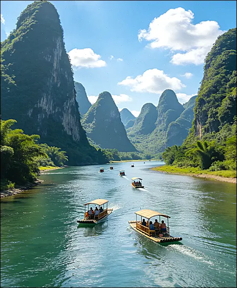 第一次来,真建议先去漓江。不是为了完成“来都来了”的流程,而是要先把桂林的气口接上。这里的山不张扬,却一座一座立得很稳,像把人心里的浮躁按住;水也不急,光一落下去,江面就有层次,像在慢慢换表情。你站在船边,不用拼命找最经典的机位,反倒是发动机声停下来的那一瞬,风从江面过来,脑子会突然安静。