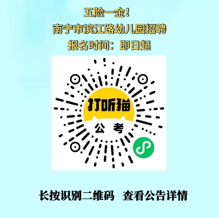 【南宁招聘】五险一金!南宁市滨江路幼儿园招聘!