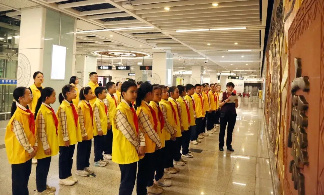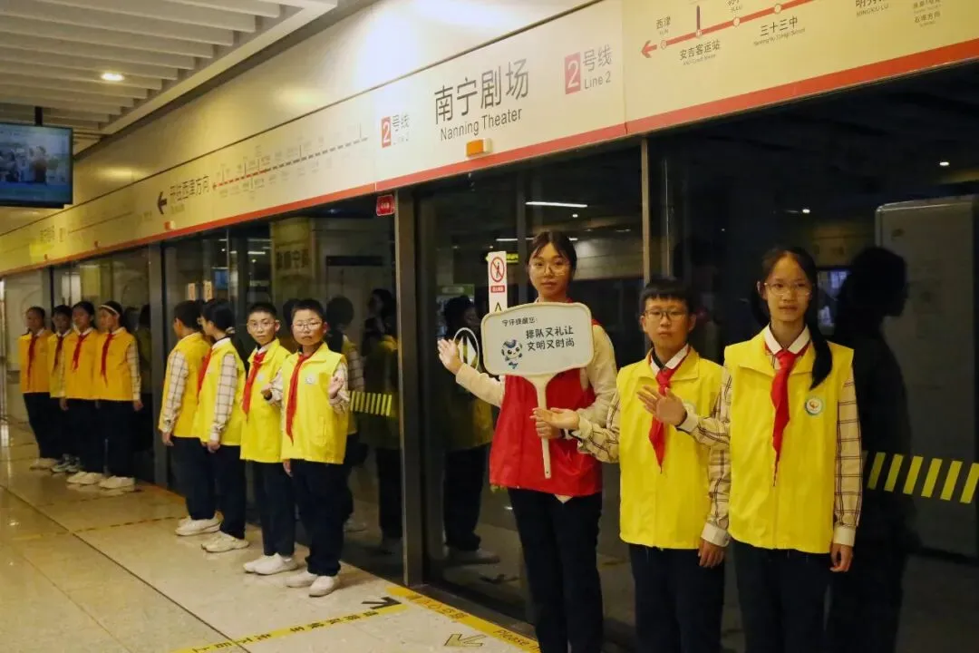 3月26日,“善雅”志愿服务队走进南宁剧场地铁站。首先参观党建基地感悟红色文化,还在工作人员指导下学习服务规范流程,分组开展引导乘客购票、文明乘车等志愿服务活动,展现福小师生的良好精神风貌。