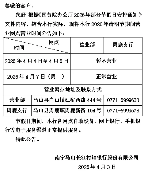 2026年清明节南宁市疾病预防控制中心预防医学门诊部开诊安排