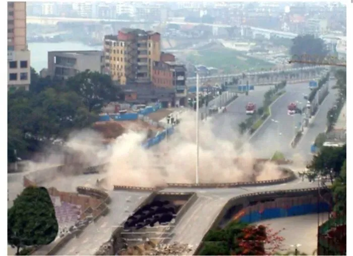 南宁市政府官网发布的拆除该立交桥时的现场图片