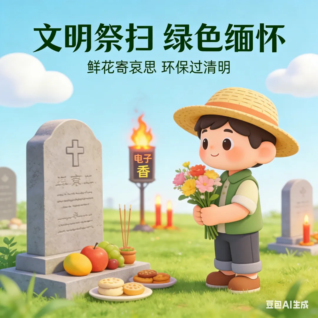 2.践行文明祭扫,弘扬时代新风:自觉遵守森林防火及城市管理相关规定。倡导采用鲜花祭扫、植树缅怀、网络追思、家庭追思会等绿色、文明、环保的方式寄托哀思,争做文明新风的践行者和传播者。
