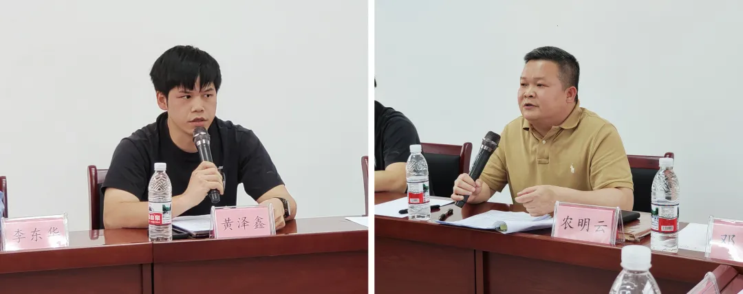 南宁天等商会秘书长农登良(左)与副秘书长黄凤锦(右)为建立现代法人治理结构,会议审议通过了系统的商会会议制度与财务资产管理制度。