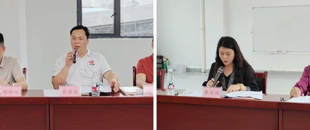 南宁天等商会法人会长黄泽鑫(左)与执行会长农明云(右)为确保商会各项工作有效落实,会议详细制定了秘书处岗位设置及工作职责。秘书处作为商会的常设执行机构,由农登良副会长兼任秘书长,黄凤锦兼任副秘书长,黄玉锦专职秘书。秘书处将全面负责会员服务、行政办公、财务核算、宣传推广等具体事务,确保商会高效运转。