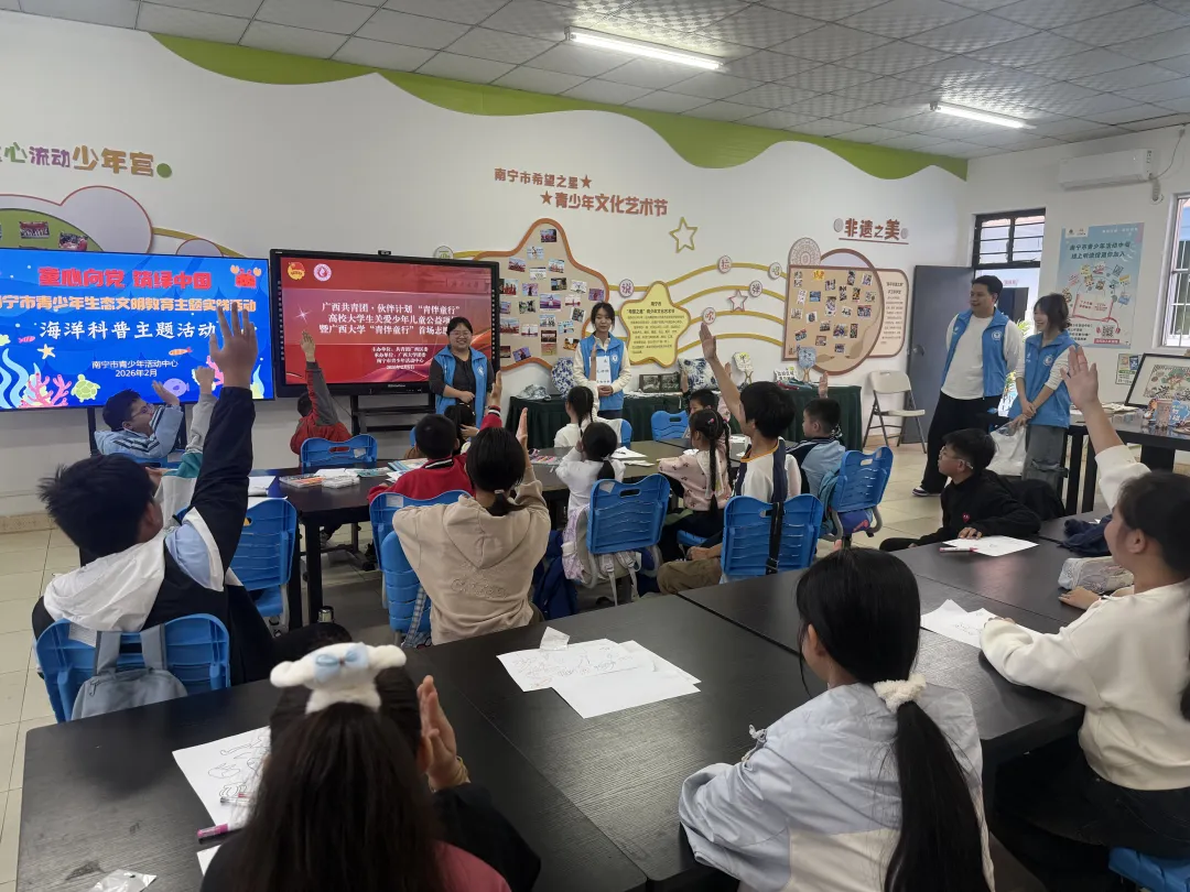 共青团南宁市委积极构建“共青团+社会组织+社工+志愿者+爱心单位”协同模式,统筹整合民政、教育、街道社区、爱心企业等多方力量,推动资源整合与服务落地。从消防、石化企业的职业体验与研学,到返乡大学生、民间艺人、疾控专家等多元力量共同参与,关爱服务正汇聚起更持续的合力。