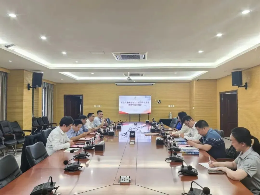 会议伊始,人才金港集团董事长王群对与会专家的支持表示感谢。她指出,编制产才融合与人才竞争力蓝皮书,是服务南宁产业升级、强化人才引育留用的重要举措,对提升城市人才吸引力、打造区域人才高地具有关键作用。南宁北部湾人才金港有限公司总经理王超介绍蓝皮书研究背景、意义与编制必要性,阐明项目立足南宁发展实际、服务重点产业、优化人才生态、对接东盟合作的核心定位。中国人事科学研究院研究员袁娟系统汇报蓝皮书研制方案,围绕建设面向东盟开放合作的国际化大都市战略目标,聚焦人才引、育、留、用全链条痛点,构建科学严谨的技术路线与推进计划。南宁市社会科学院东盟研究所所长周博就研究方向、内容边界与编制原则提出具体意见建议,确保成果务实精准。