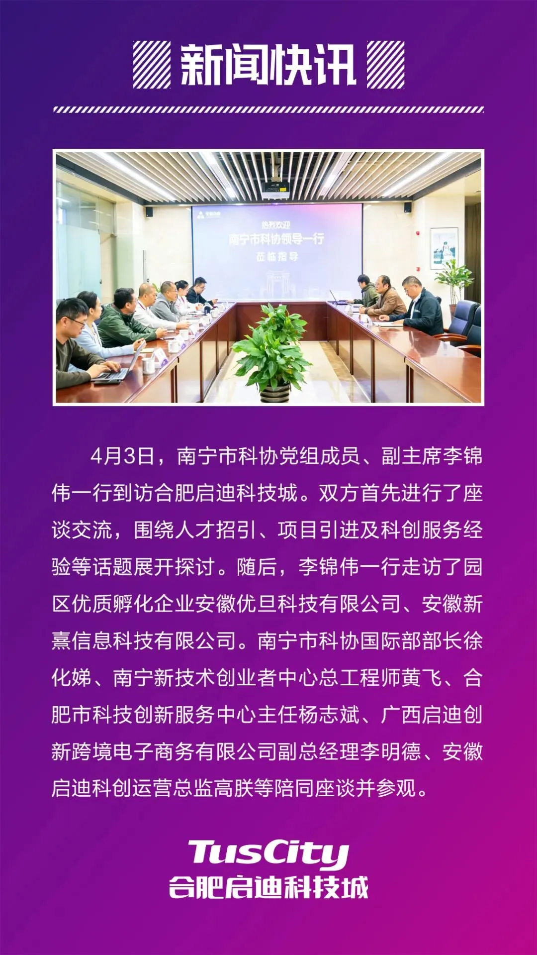 南宁市科协党组成员、副主席李锦伟一行到访合肥启迪科技城