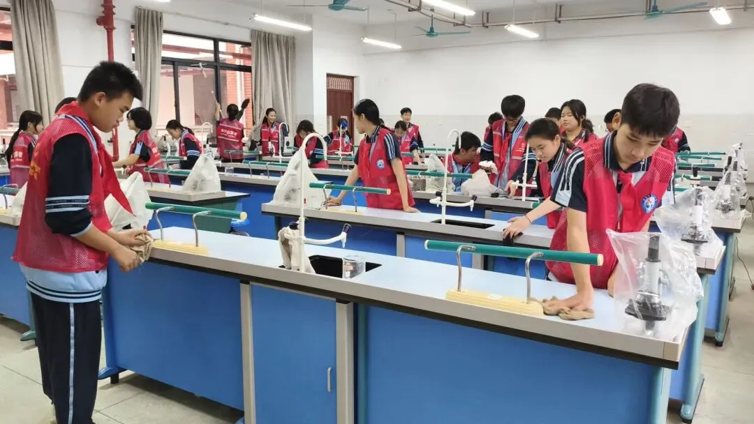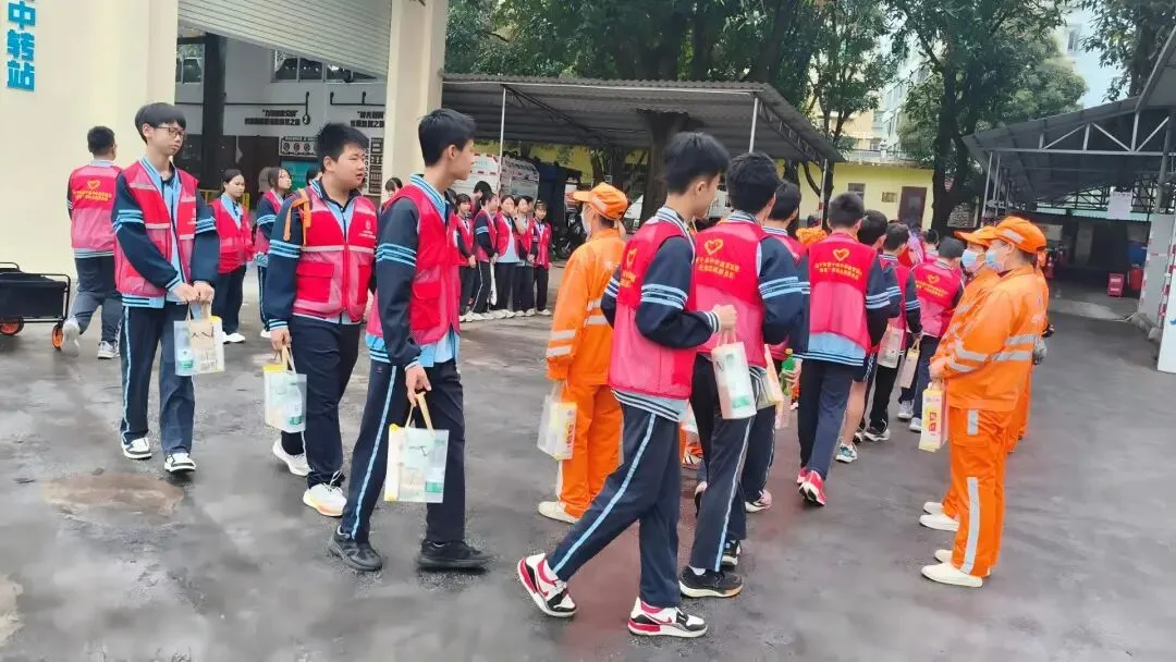 2026年3月,南宁市第十四中学五象校区2025级51班围绕“学习雷锋好榜样,争做时代好少年”主题,开展了一系列志愿服务实践活动,以实际行动传承雷锋精神。同学们清洗志愿者马甲、打扫实验室,用劳动守护校园阵地;走进环卫站学习环保知识、慰问环卫工人,在实践中尊重劳动、关爱他人。