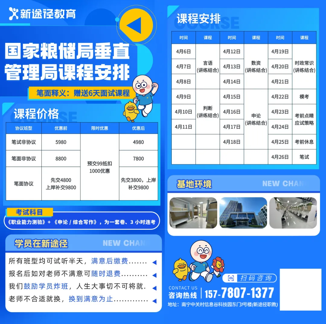 ✅ 浓厚学习氛围:沉浸式学习环境,远离外界干扰,每天高强度、高效率学习,集中精力突破公考难关,实现知识储备与解题能力的双重飞跃。与志同道合的小伙伴们并肩作战,互相鼓励、交流学习心得。在竞争与合作中激发学习动力,共同进步,让备考之路不再孤单。