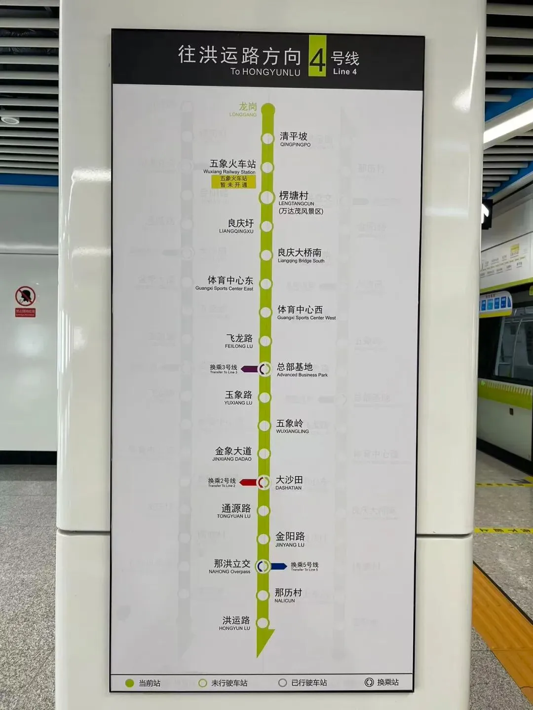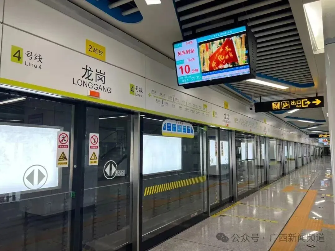 9月26日,南宁市轨道交通4号线一期工程后通段(楞塘村站—龙岗站)开通运营,填补了邕宁区轨道交通的空白,全市轨道交通运营总里程突破132公里,邕宁区实现轨道交通“零的突破”,为推动首府高质量发展注入强劲动力。4号线一期工程起于洪运路站,终至龙岗站,是横贯五象新区,连接邕宁龙岗片区与中心城区的骨干线路。随着清平坡站、龙岗站正式投入使用,4号线全线车站增至18座,线路全长25.05公里,有3座换乘站,分别为总部基地站、大沙田站、那洪立交站,与3号线、2号线、5号线实现换乘衔接。▲图片来源 :南宁市融媒体中心