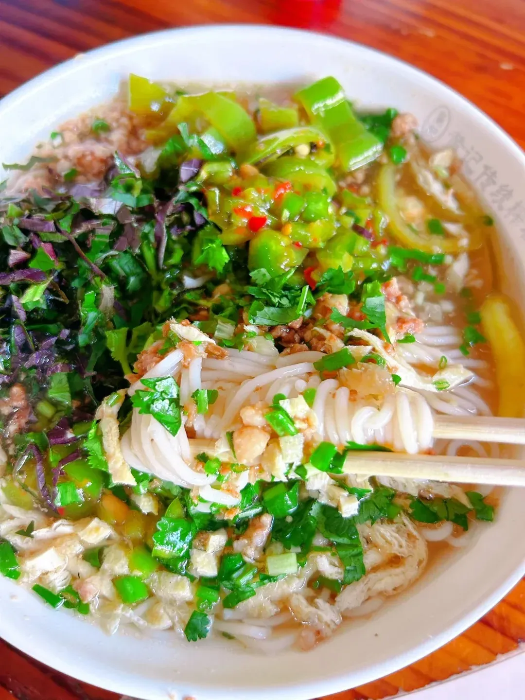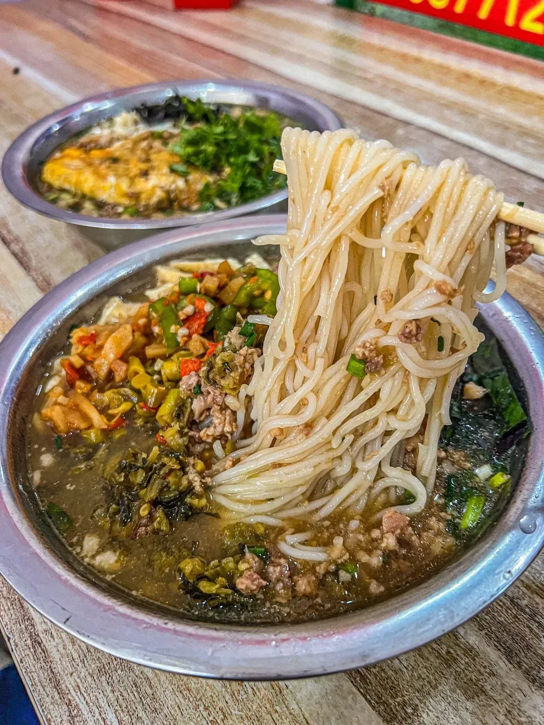 古镇榨粉店的米粉都是现场制作,鲜榨出来的粉吃起来口感细腻顺滑,再搭配上豆腐肉末,每一口都令人心满意足,那独特的微酸味道直击味蕾深处,让人上头。