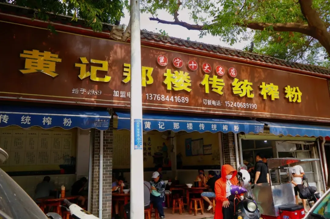 作为邕宁十大名店之一的黄记那楼传统榨粉店,被广大网友认为是“来蒲庙一定要来吃一次”的生榨米粉店,它家的粉以粉鲜嫩滑、极具韧性不易断等特点而广受人们欢迎,也是不少邕宁人的童年回忆。