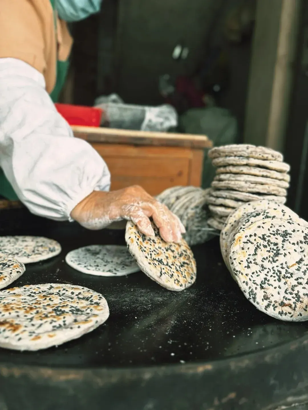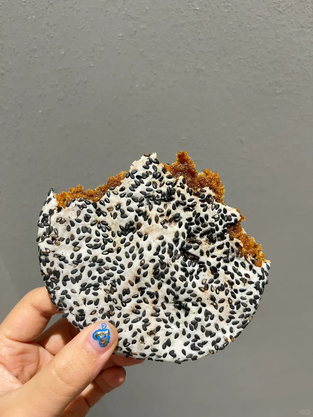 轻轻一折,芝麻饼便裂成两半,伴随着清脆的声响,释放出诱人的香气。细嚼之下,那香脆的芝麻与恰到好处的红糖馅儿交织,唤醒了味蕾深处对年节的甜蜜记忆,让人沉醉在这份传统风味之中。